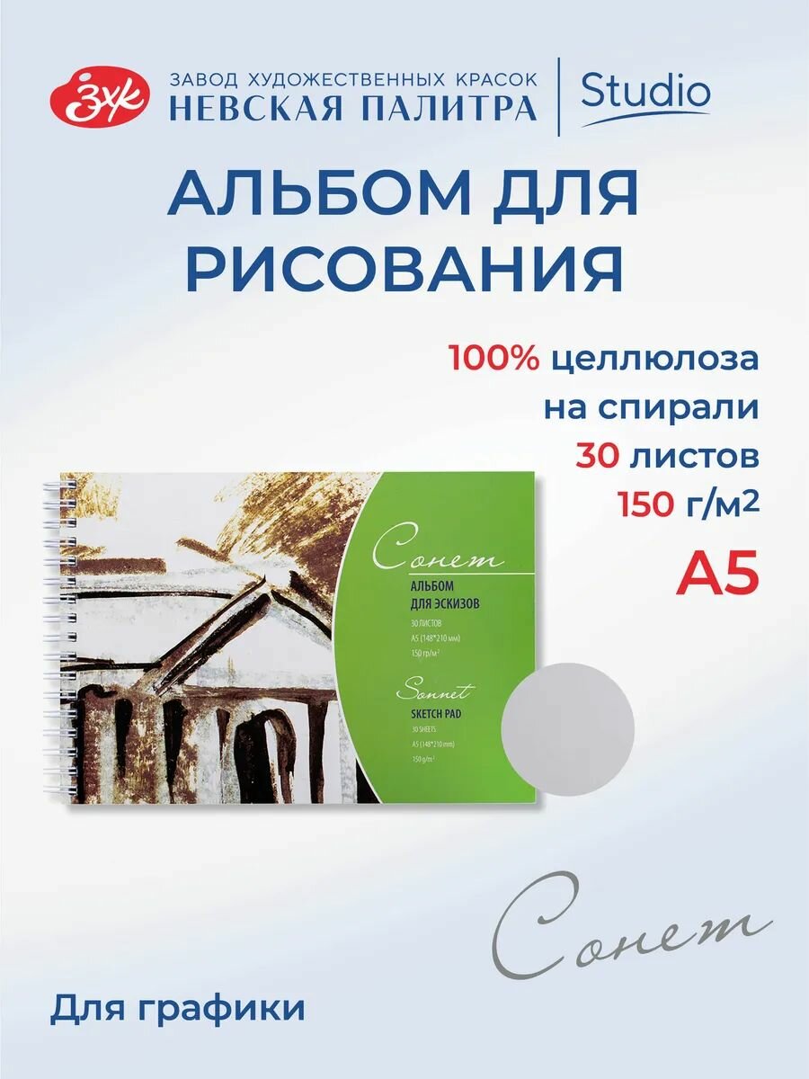 Купить Альбом для рисования для эскизов на спирали Невская палитра Сонет, А5, 30 листов DK19013