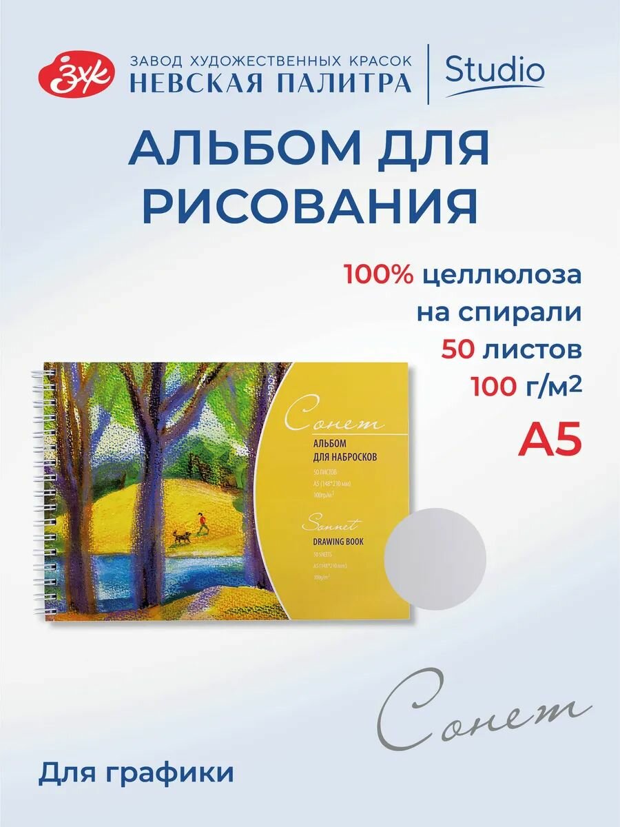 Альбом для рисования для набросков Невская палитра Сонет, А5, 50 л DK19003 интересное: