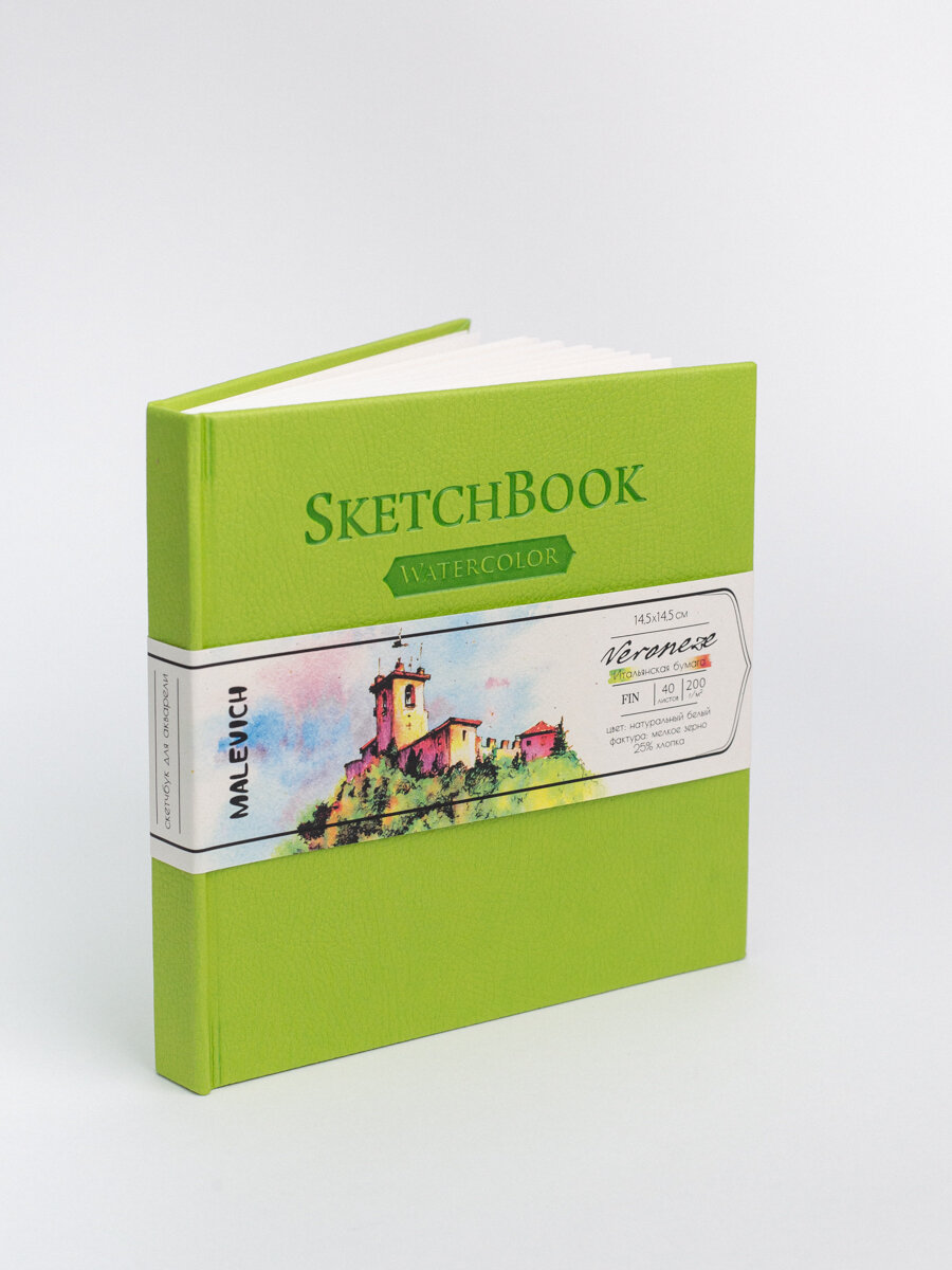 Купить Скетчбук Малевичъ для акварели Veroneze, салатовый, 200 г/м, 14,5х14,5 см, 40