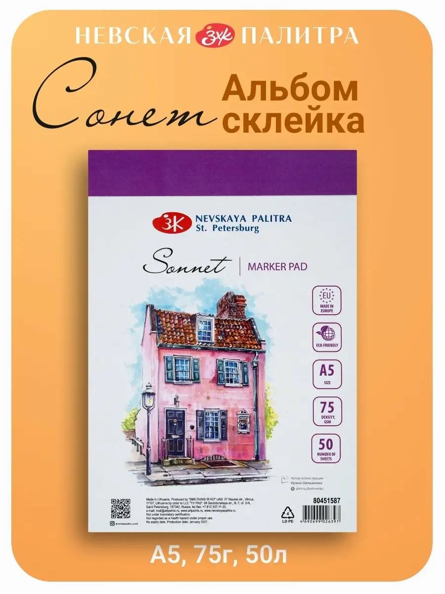 Альбом для маркеров Невская палитра Сонет, А5, 50 л, 100% целлюлоза 80451587 интересное: