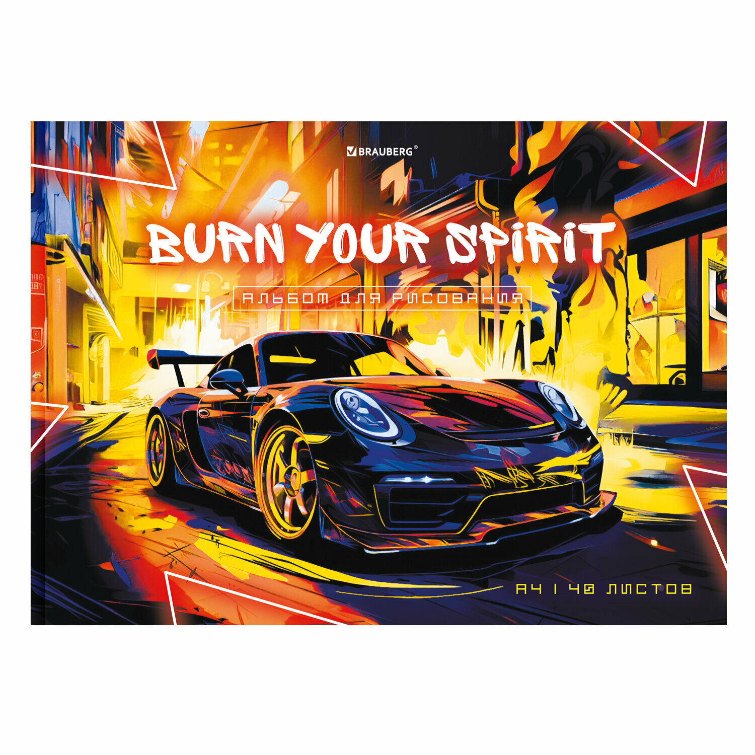 Купить Альбом для рисования в школу А4 40 листов на склейке, набор 2 штуки, обложка картон, Brauberg Авто, 107021