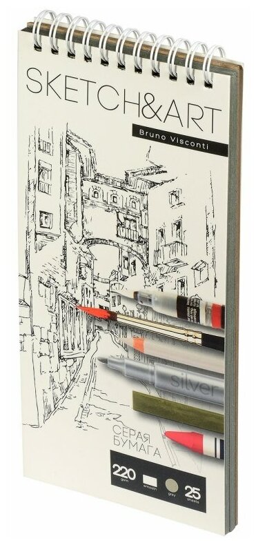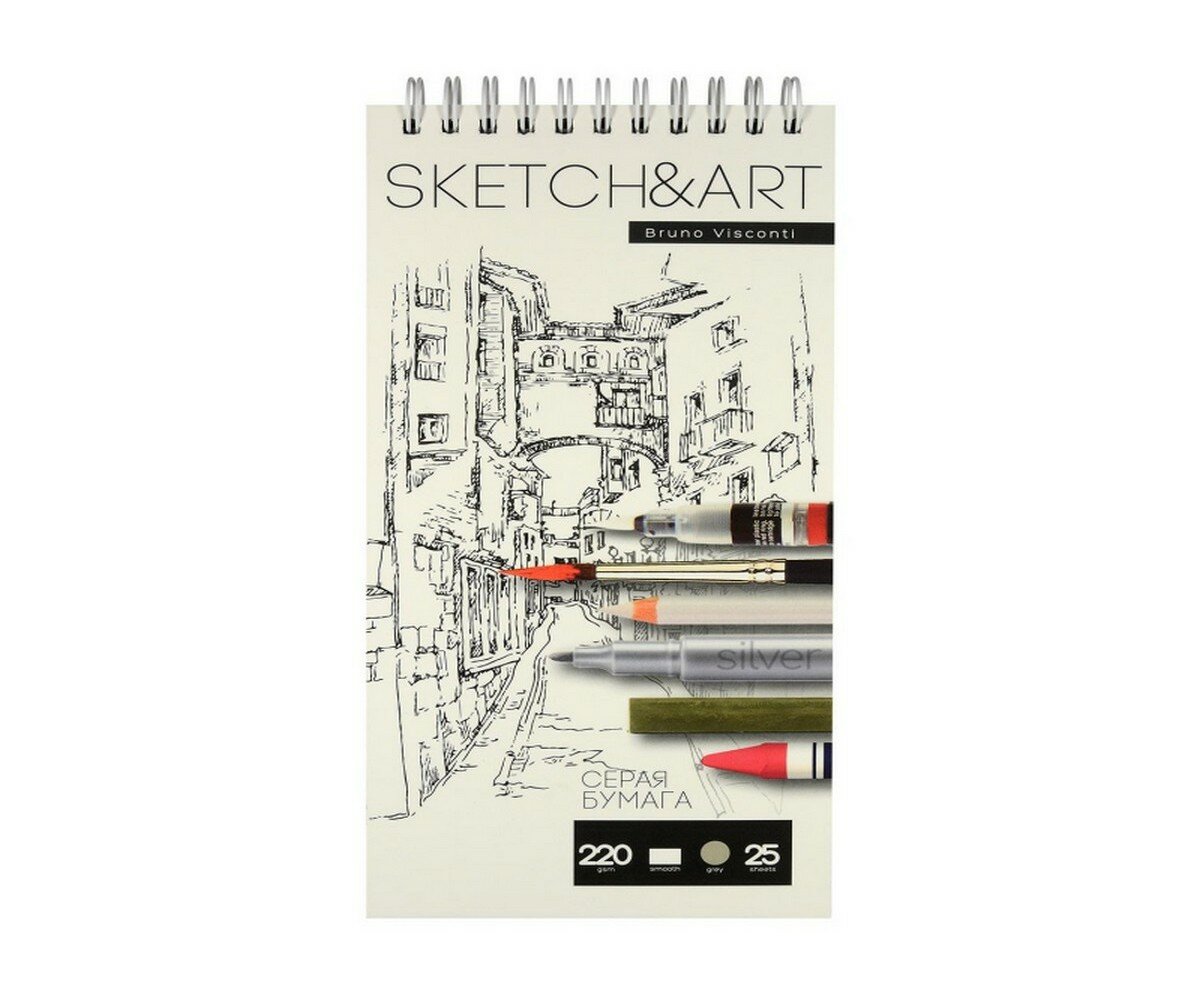 Купить SKETCHBOOK SKETCH&ART BV,105х220 мм, 25 Л. серый 220 ГР. на гребне, для скетчинга, Арт. 1-25-563/03