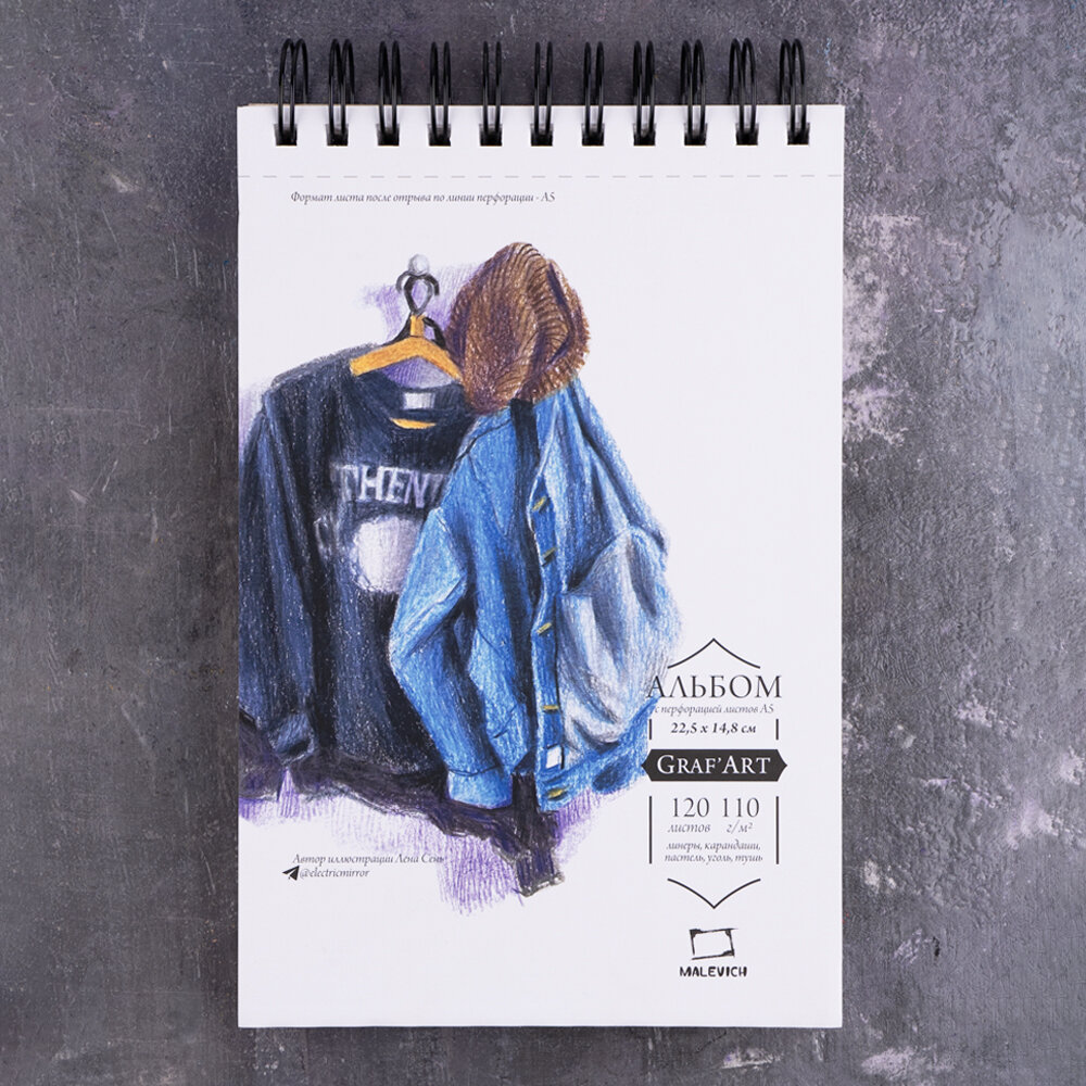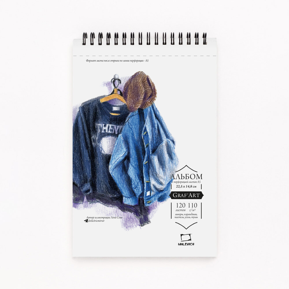 Скетчбук Малевичъ для графики GrafArt Sketch на спирали, 110 г/м, А5, 120л интересное: