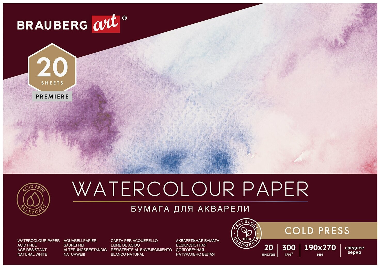 Альбом для акварели 190х270мм, 20л Brauberg Art Premiere (бумага 300 г/кв. м, среднее зерно) (113222), 20шт.