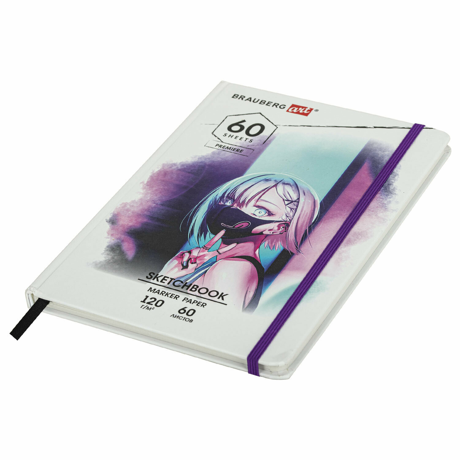 Купить Скетчбук для маркеров 120 г/м2, 148х210 мм, 60 л, твердая обложка, резинка, BRAUBERG ART, Аниме, 115102 (арт. 115102)