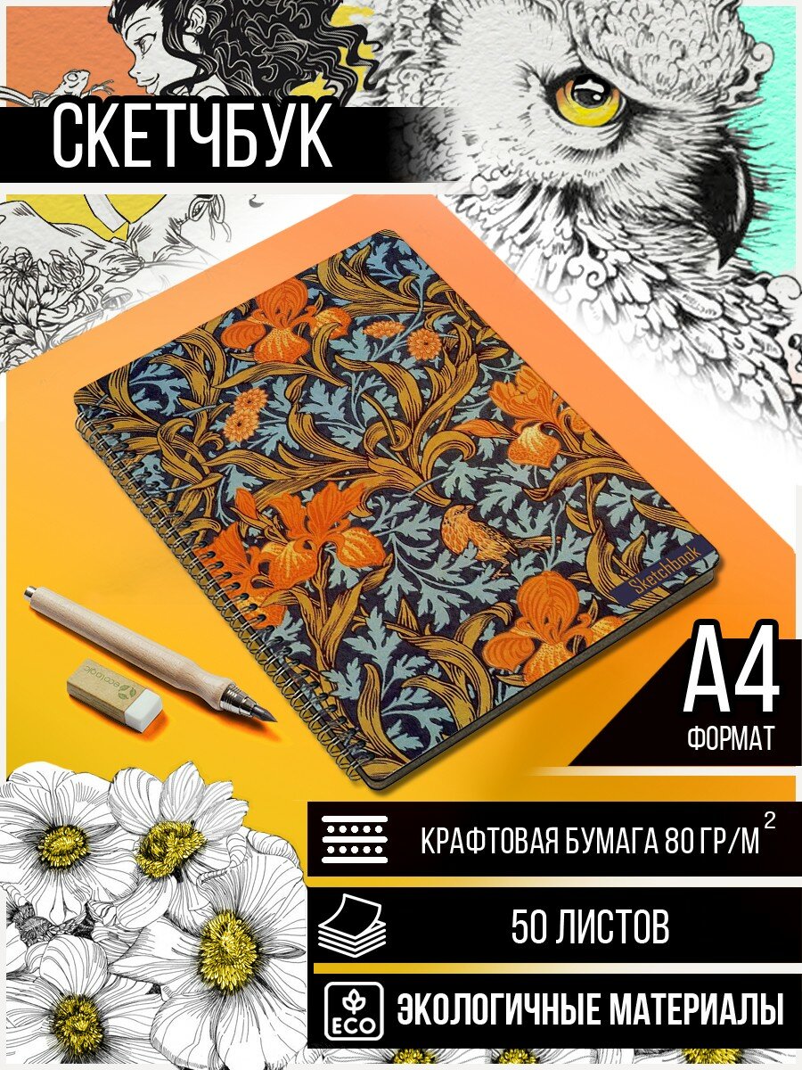 Скетчбук А4 крафт 50 листов эстетика Растительный орнамент (Уильям Моррис, цветы) - 2686 интересное: