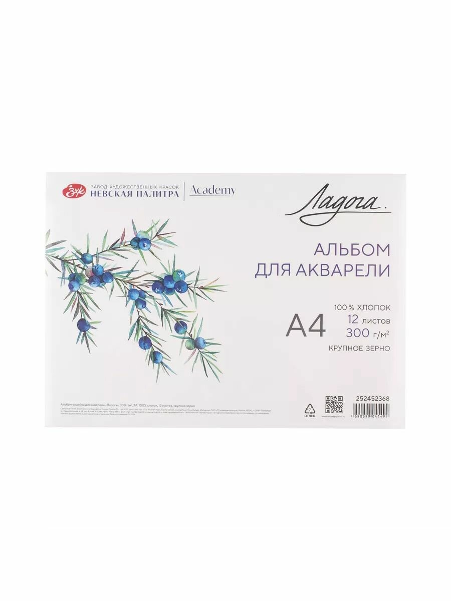 Альбом для рисования Невская палитра Ладога, А4, 100% хлопок, крупное зерно, 12 листов 252452368 интересное: