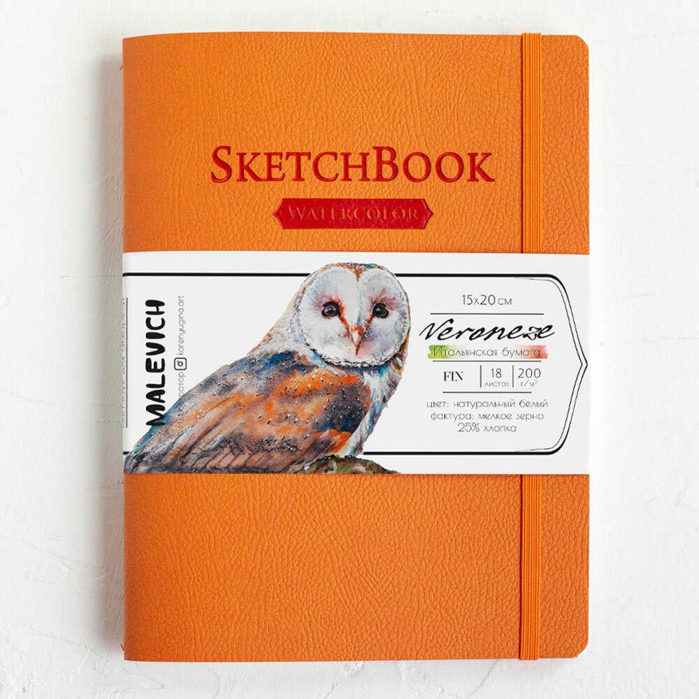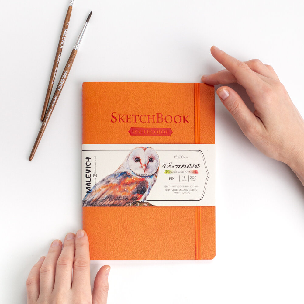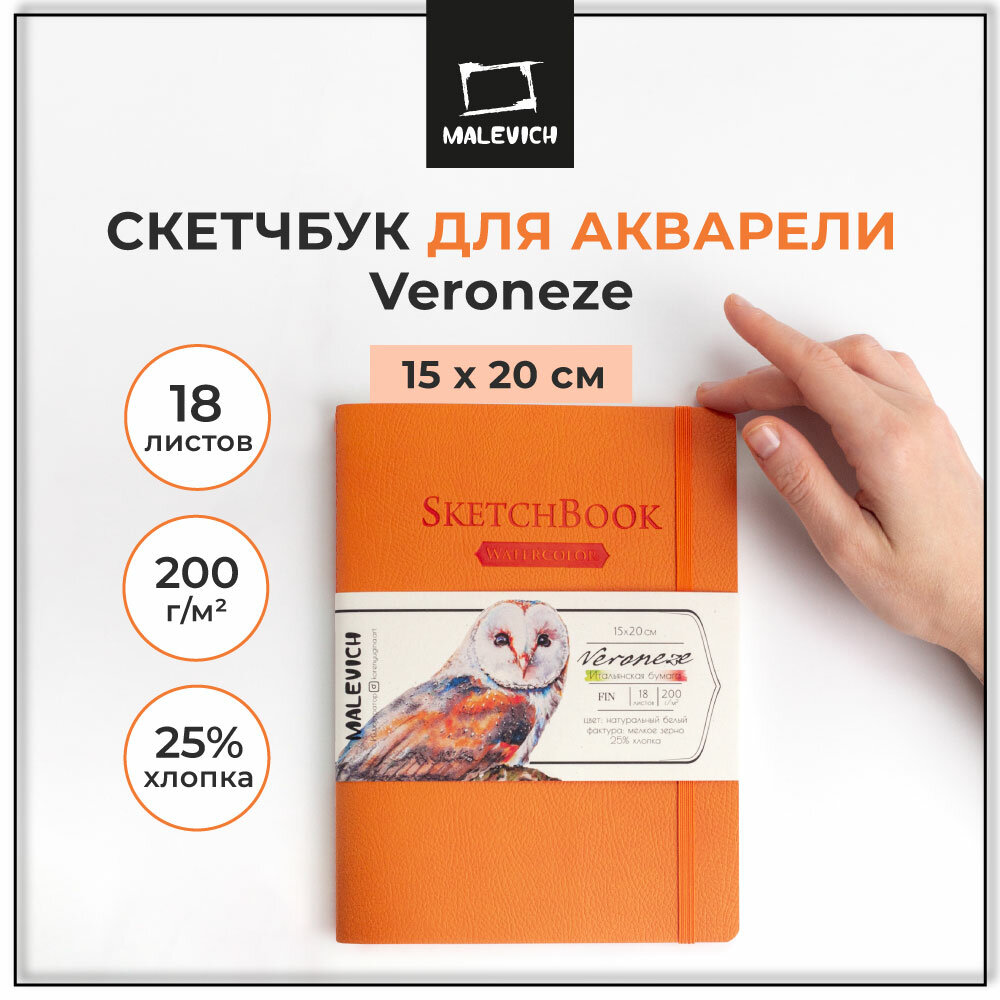 Скетчбук для акварели "Veroneze", оранжевый, 15x20 см, 18 листов, 200 г/м интересное: