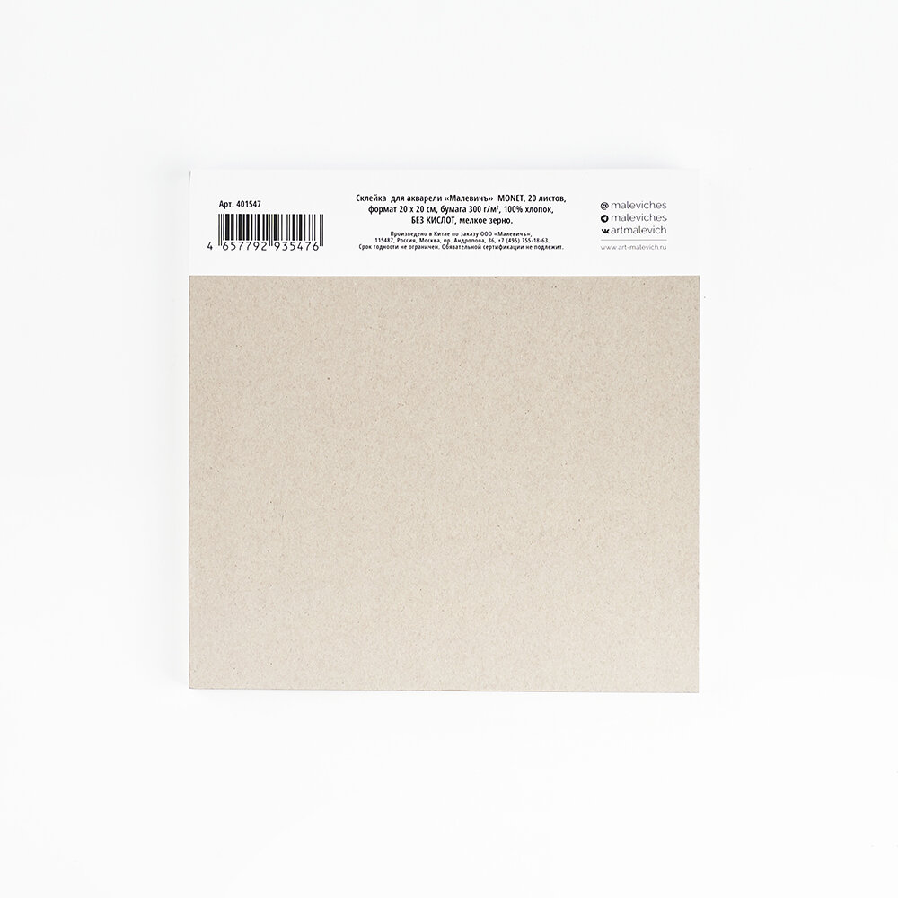 Склейка для акварели Малевичъ Monet, 100% хлопок, 300 г/м, мелкое зерно, 20х20 см, 20л интересное: