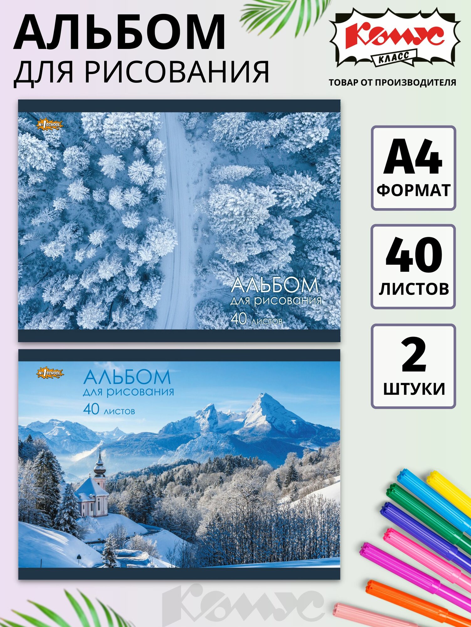 Альбом для рисования Комус Класс ColorPics А4, 40 листов, 2 штуки