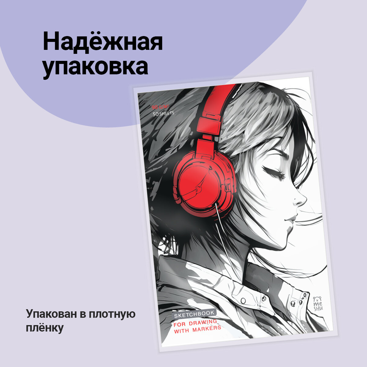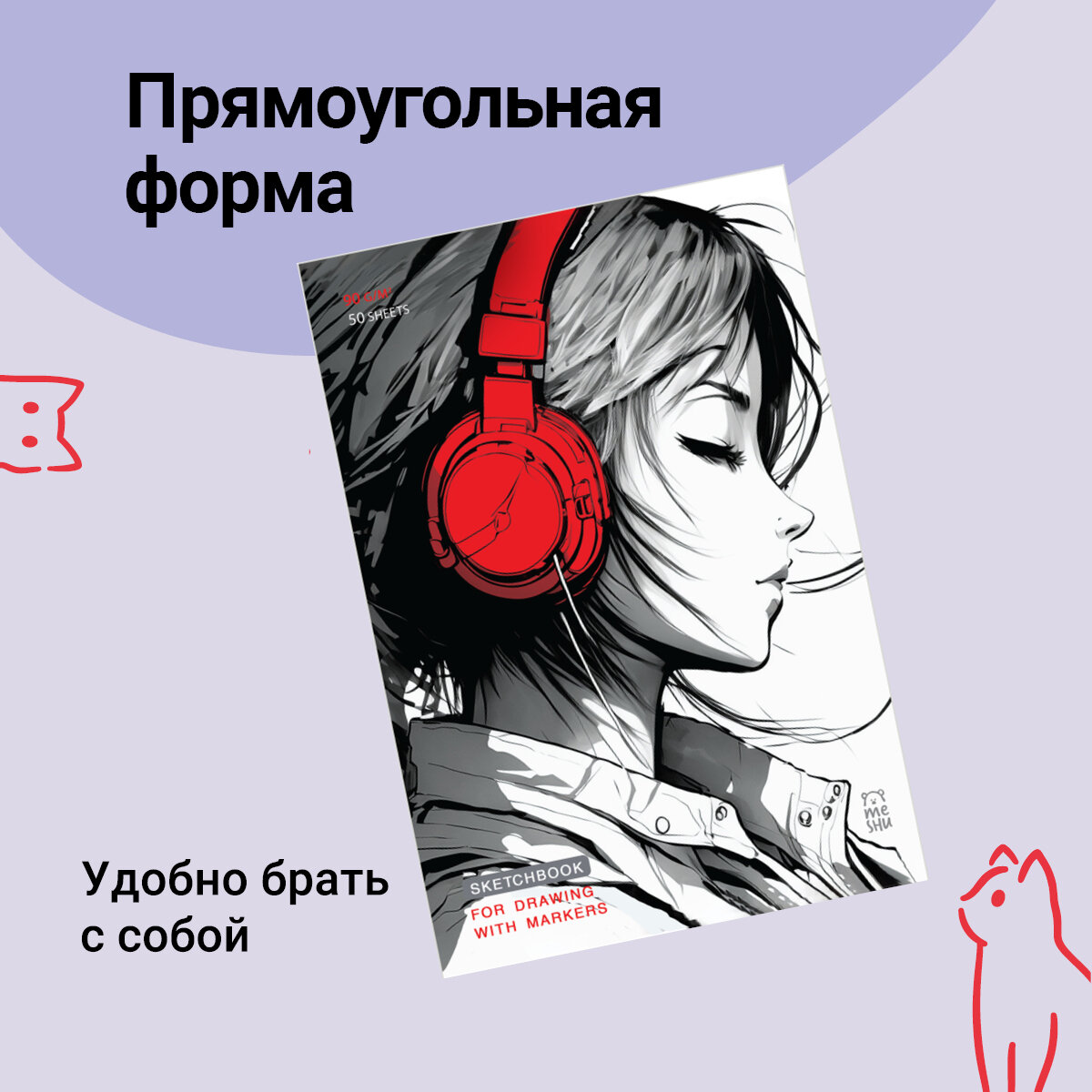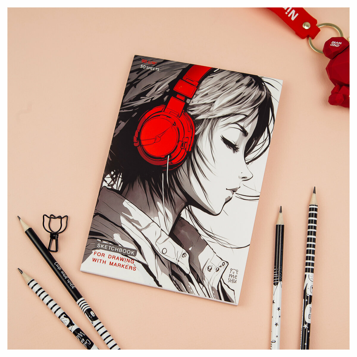 Скетчбук для рисования маркерами 50л. А5 на склейке MESHU "Girl and music", 90г/м2, soft touch интересное: