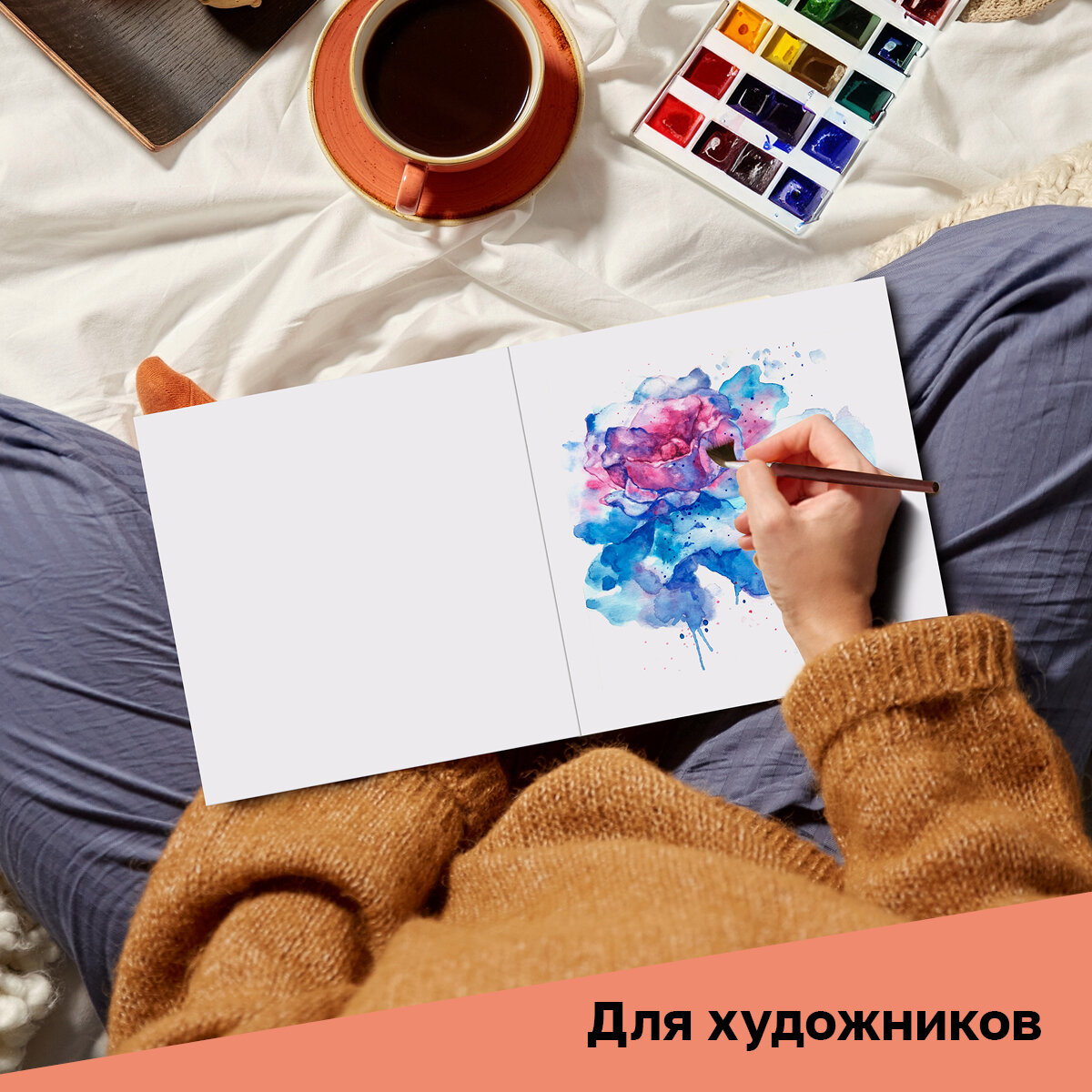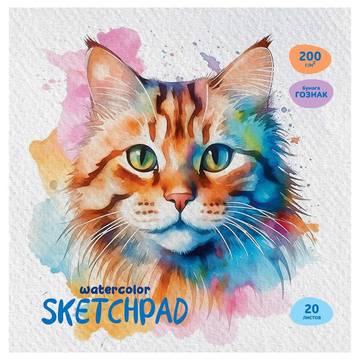 Скетчбук для акварели, 20л, 200*200 BG "Акварельный кот", на склейке, 200г/м2, гознак, среднее зерно интересное: