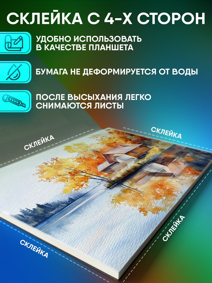 Бумага для акварели WiIMi, 16 листов, плотная, двухсторонняя, для рисования