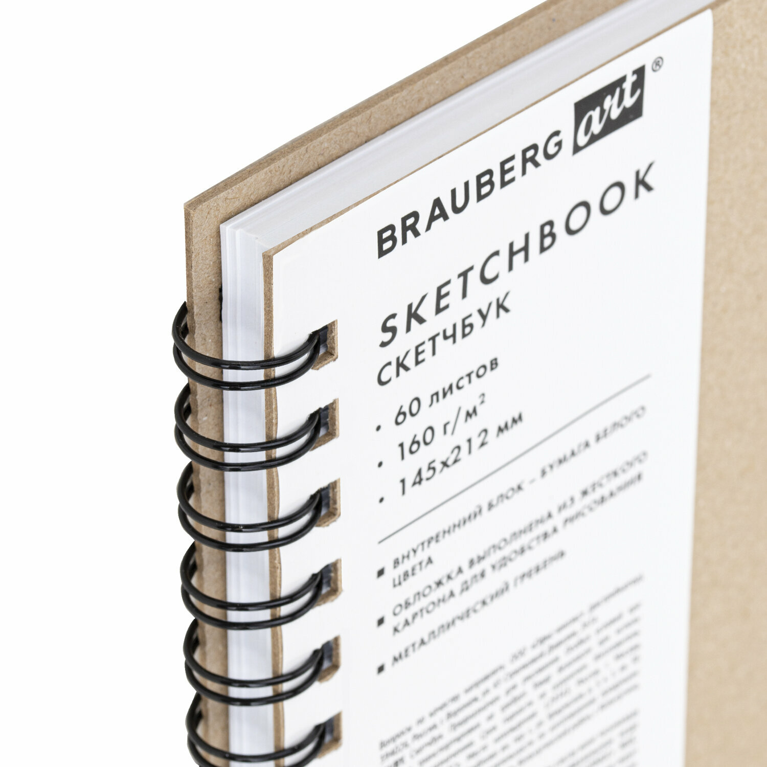 Купить Скетчбук А5 для рисования на спирали 60 листов, блокнот для скетчинга, гребень, плотная белая бумага, 15 х 21 см, 160 г/м2, обложка твердая крафт, BRAUBERG ART CLASSIC, 116365