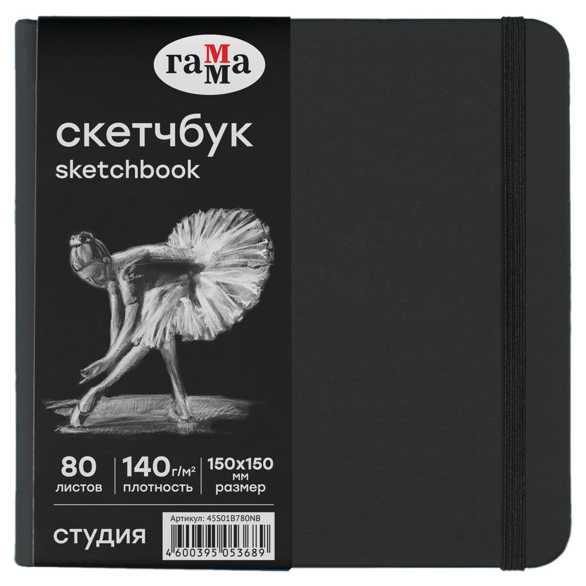 Скетчбук Гамма 80 листов 300х300 "Студия" черный, твердая обложка, на резинке, 140 г/м2 (35S01B780IB)