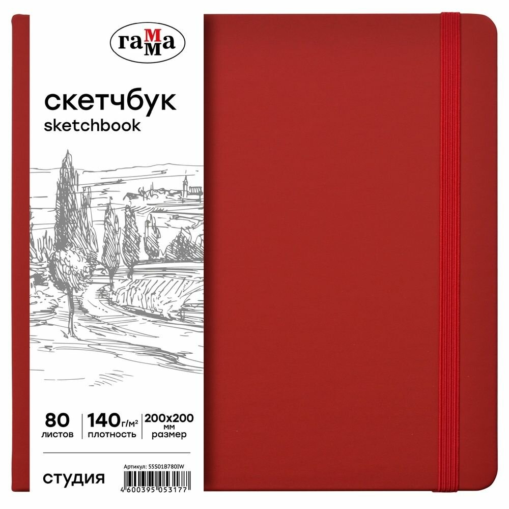 Купить Скетчбук Гамма 80 листов 200х200 "Студия" винный, твердая обложка, на резинке, 140 г/м2 (55S01B780IW)