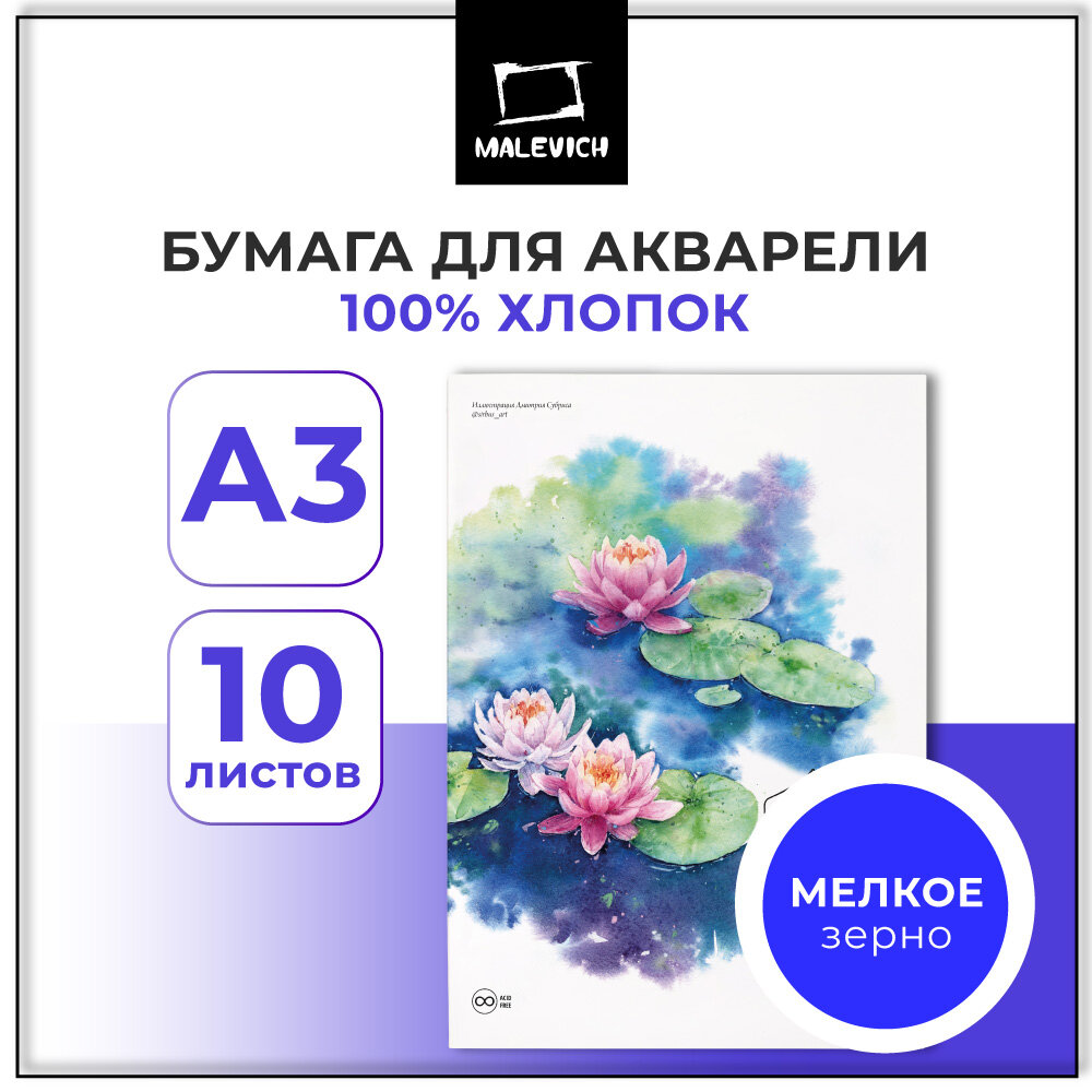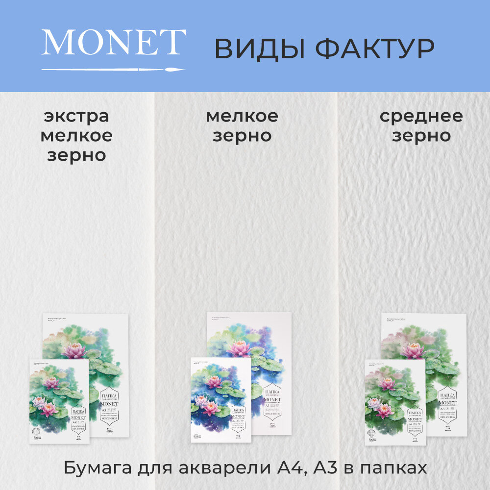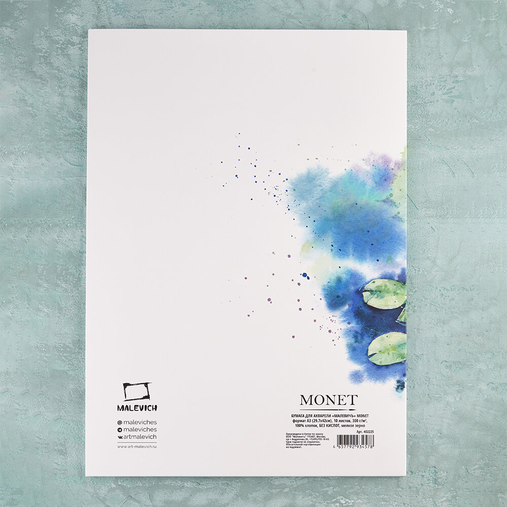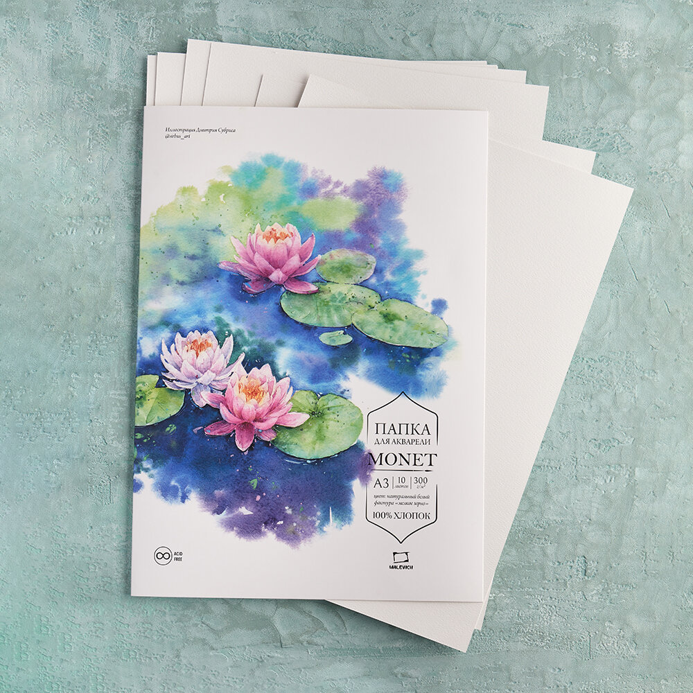 Папка для акварели Малевичъ Monet, 100% хлопок, 300 г/м, Fin, А3, 10л интересное:
