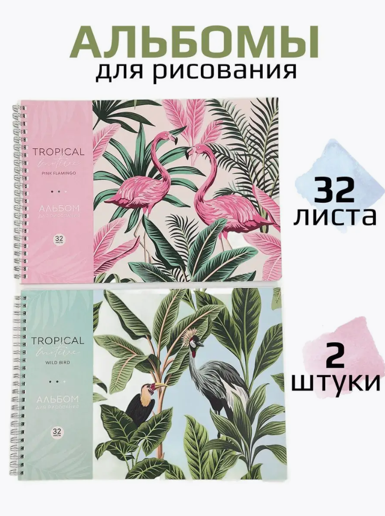 Альбом для рисования А4 ArtSpace "Цветы. Тропики" комплект 2 штуки, 32 листа на гребне интересное: