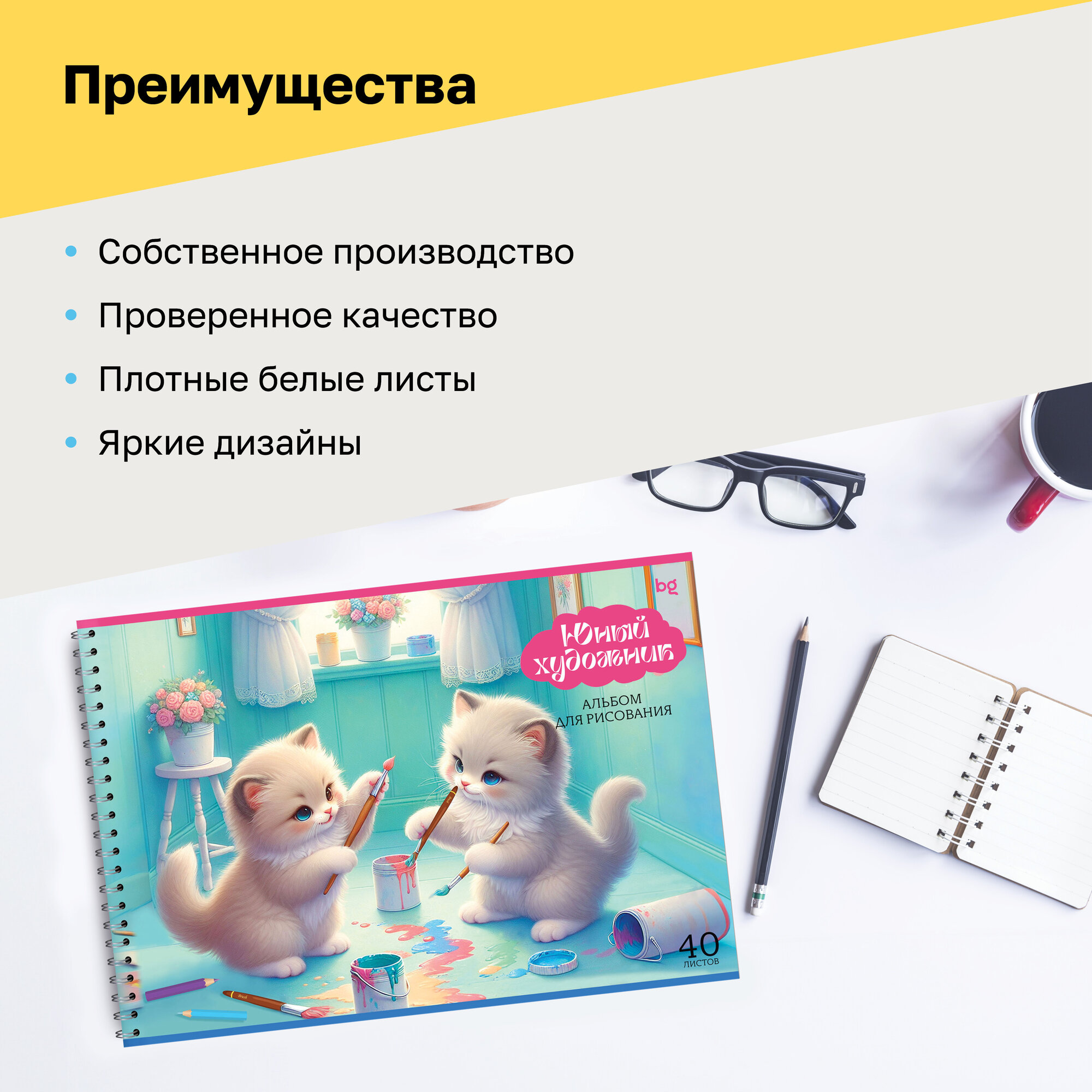 Альбом для рисования 40л, А4, на гребне BG "Юный художник", 2 шт. интересное: