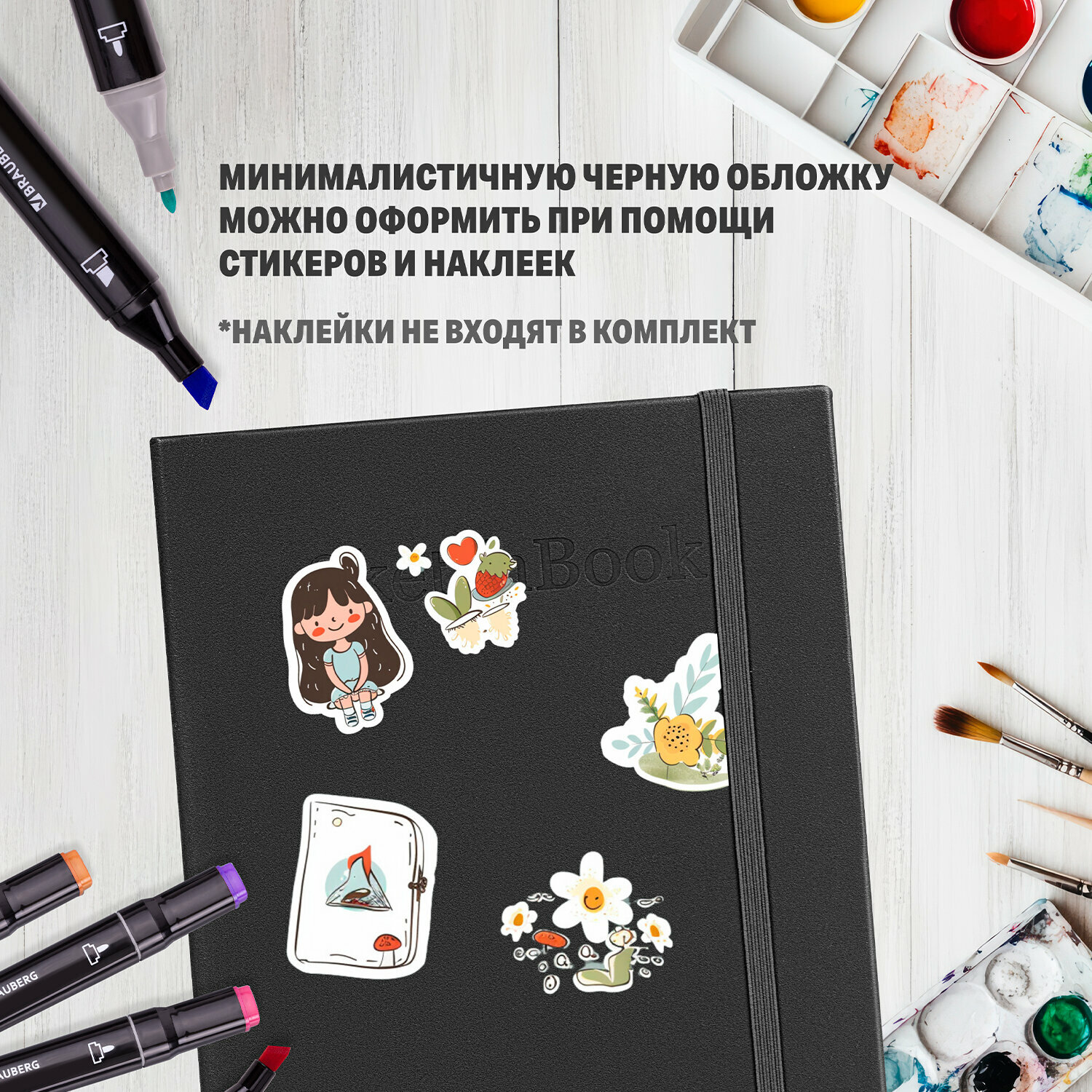 Скетчбук для графики и маркеров, бристоль 200г, 195х195мм, 32л, кожзам, BRAUBERG ART, Черный, 115100