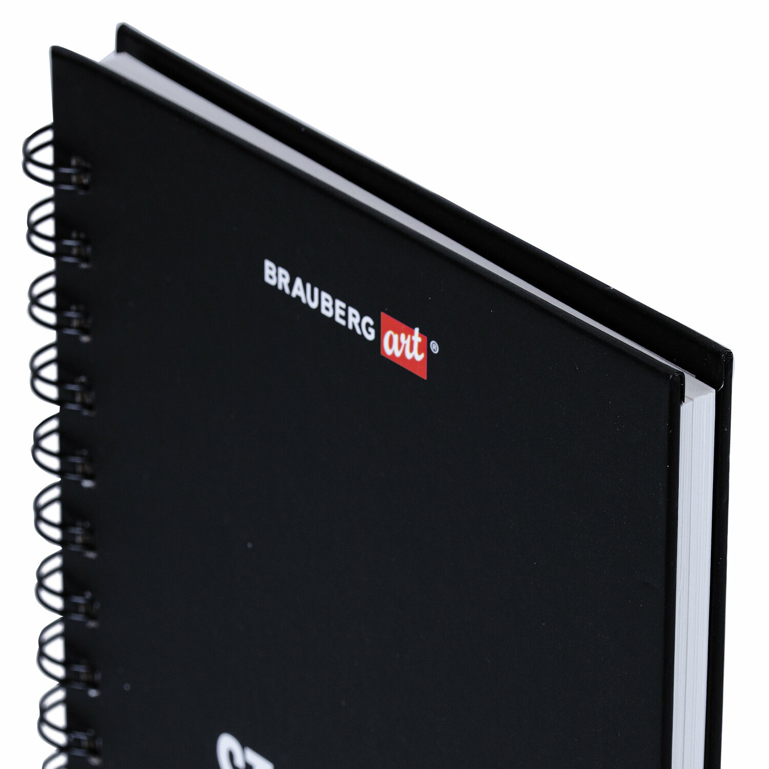 Скетчбук для графики и маркеров, бристоль 200г, 195х195мм, 32л, кожзам, BRAUBERG ART, Черный, 115100