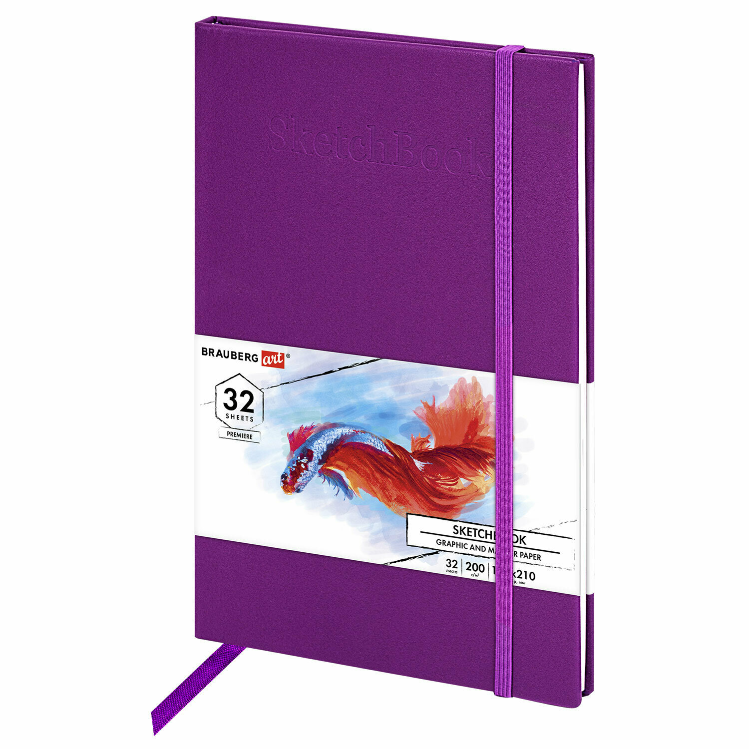 Купить Скетчбук для графики и маркеров, Бристоль 200 г/м2, 140х210мм, 32 листа, Кожзам, BRAUBERG ART PREMIERE, Сиреневый,115098