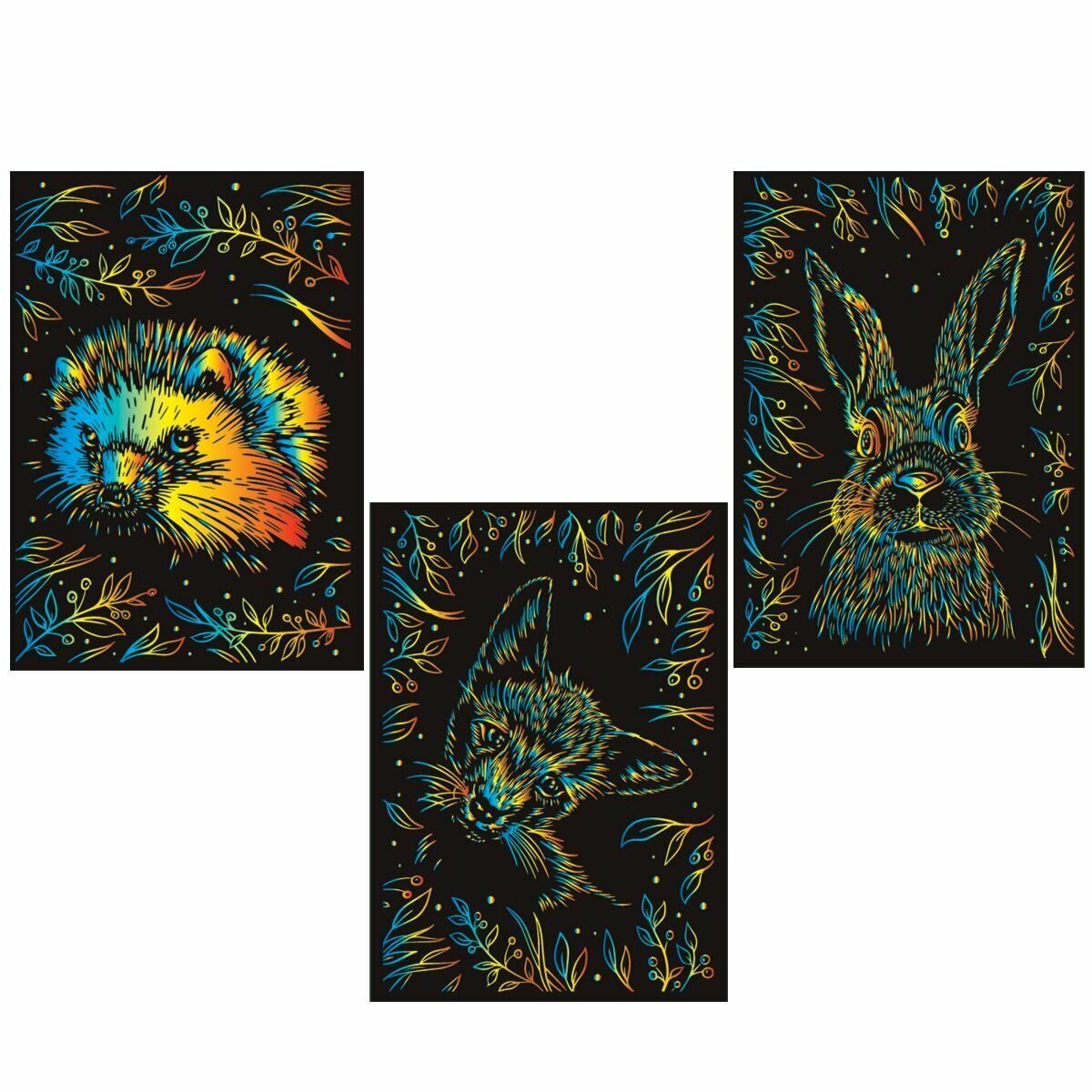 Купить Гравюра-мини с металлическим эффектом 3штуки "Лесные жители" 10x15см