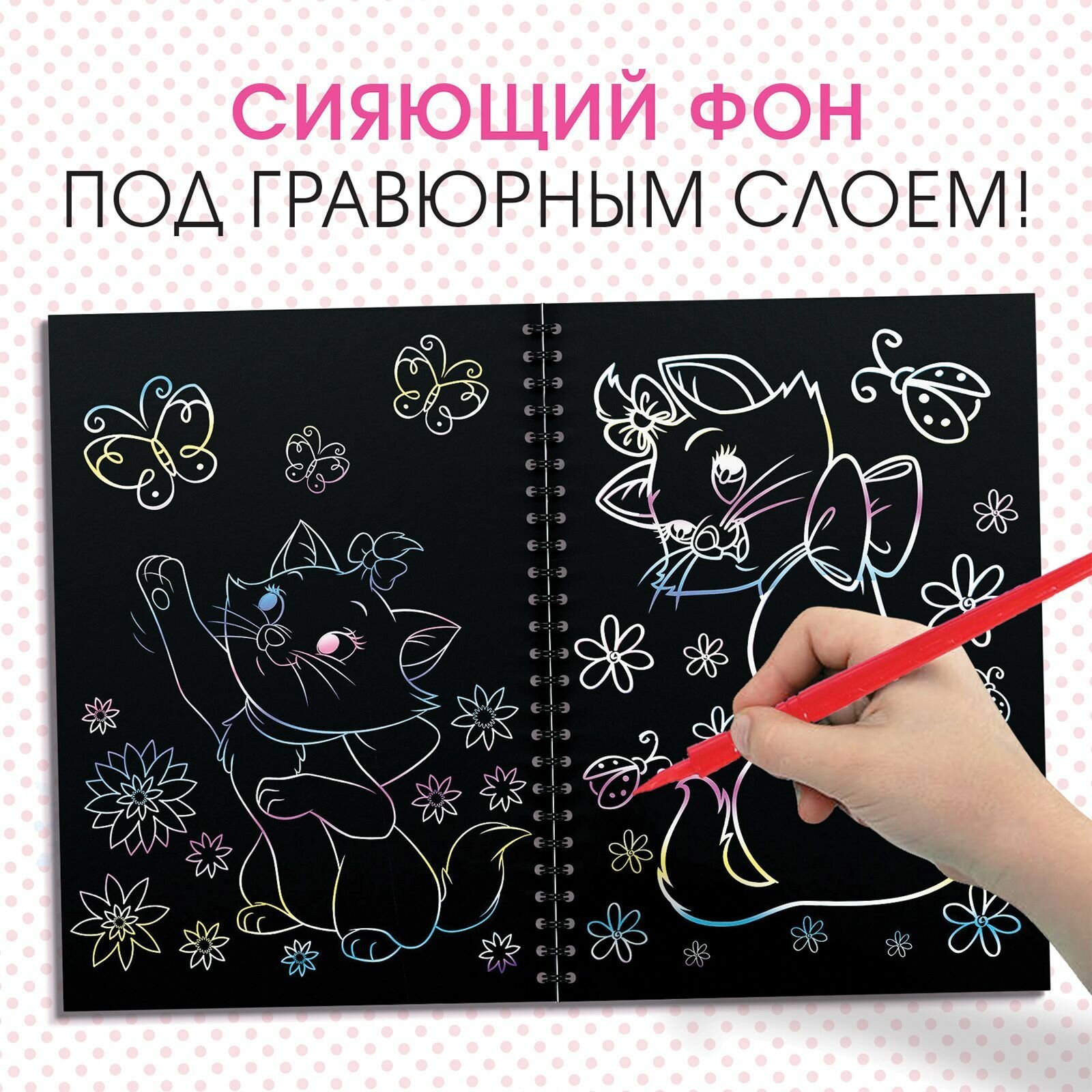 Гравюра, Дисней Коты Аристократы, творческий набор для девочки, 8 шт, блокнот с заданиями, развивашки для 3 лет интересное: