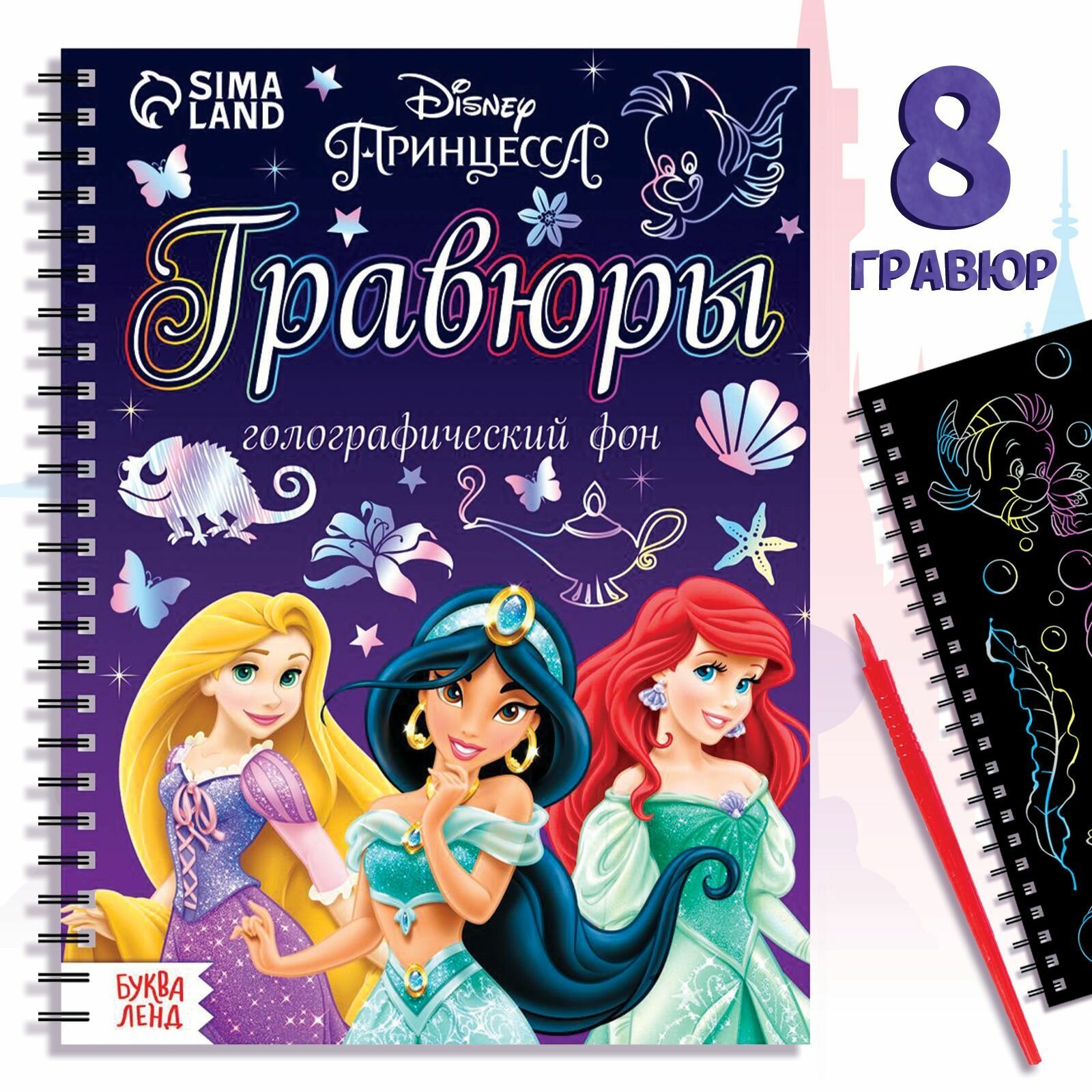 Гравюра, Дисней Принцессы, 8 шт, творческий набор для девочки, блокнот с заданиями, развивашки для 3 лет интересное: