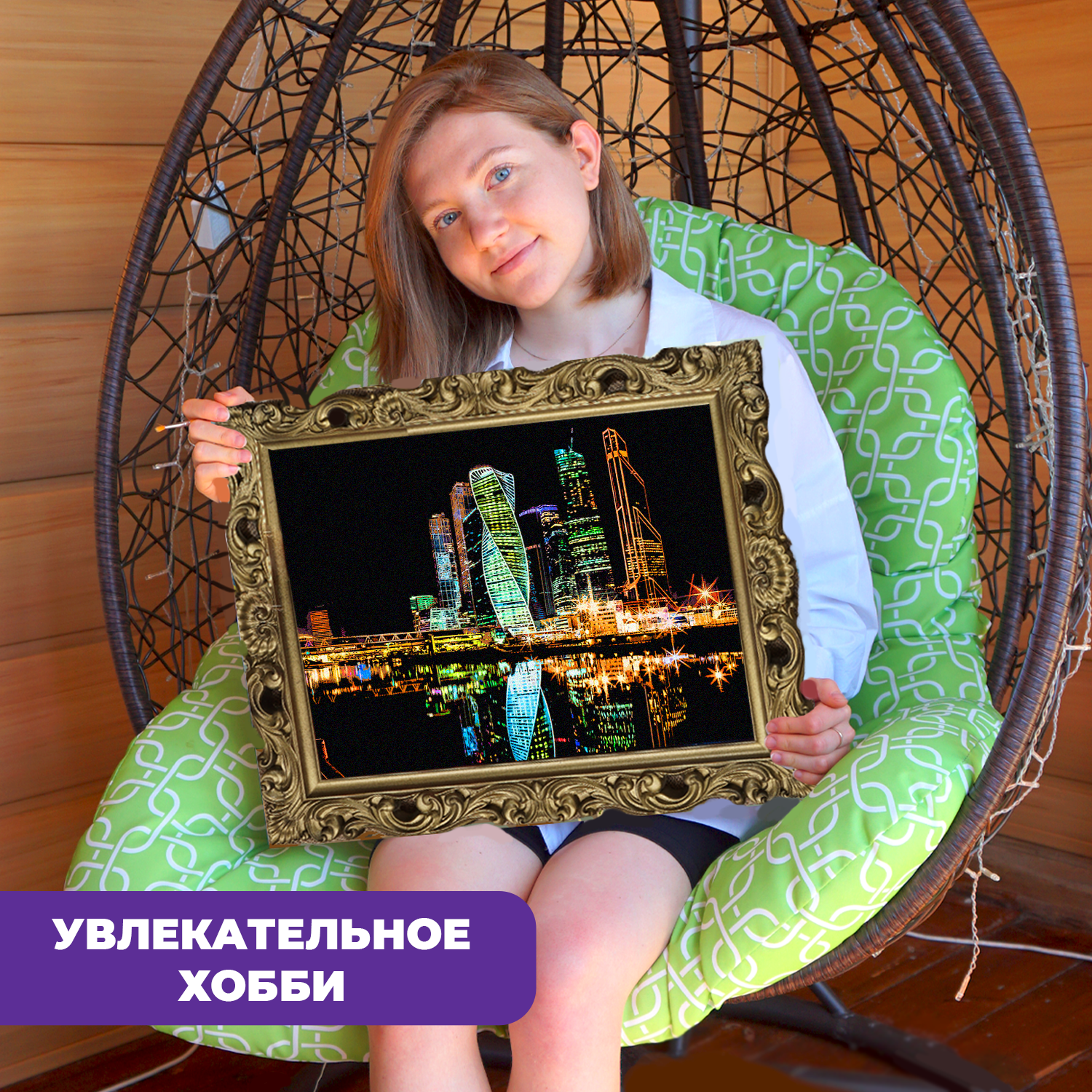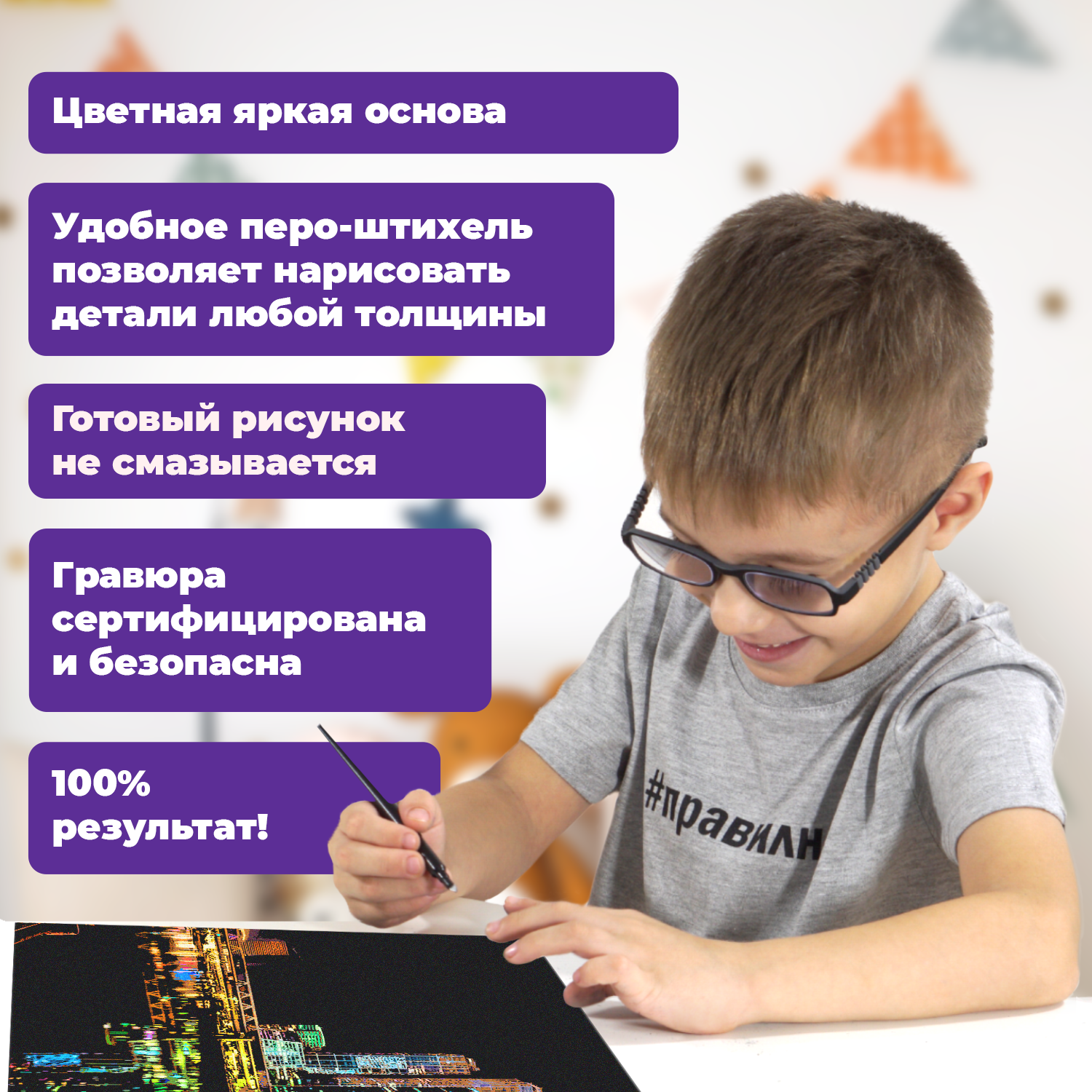 Набор для творчества большая гравюра цветная скретч картина для детей LORI Ночные города, 30х40 см, 3 шт, Им-339 интересное: