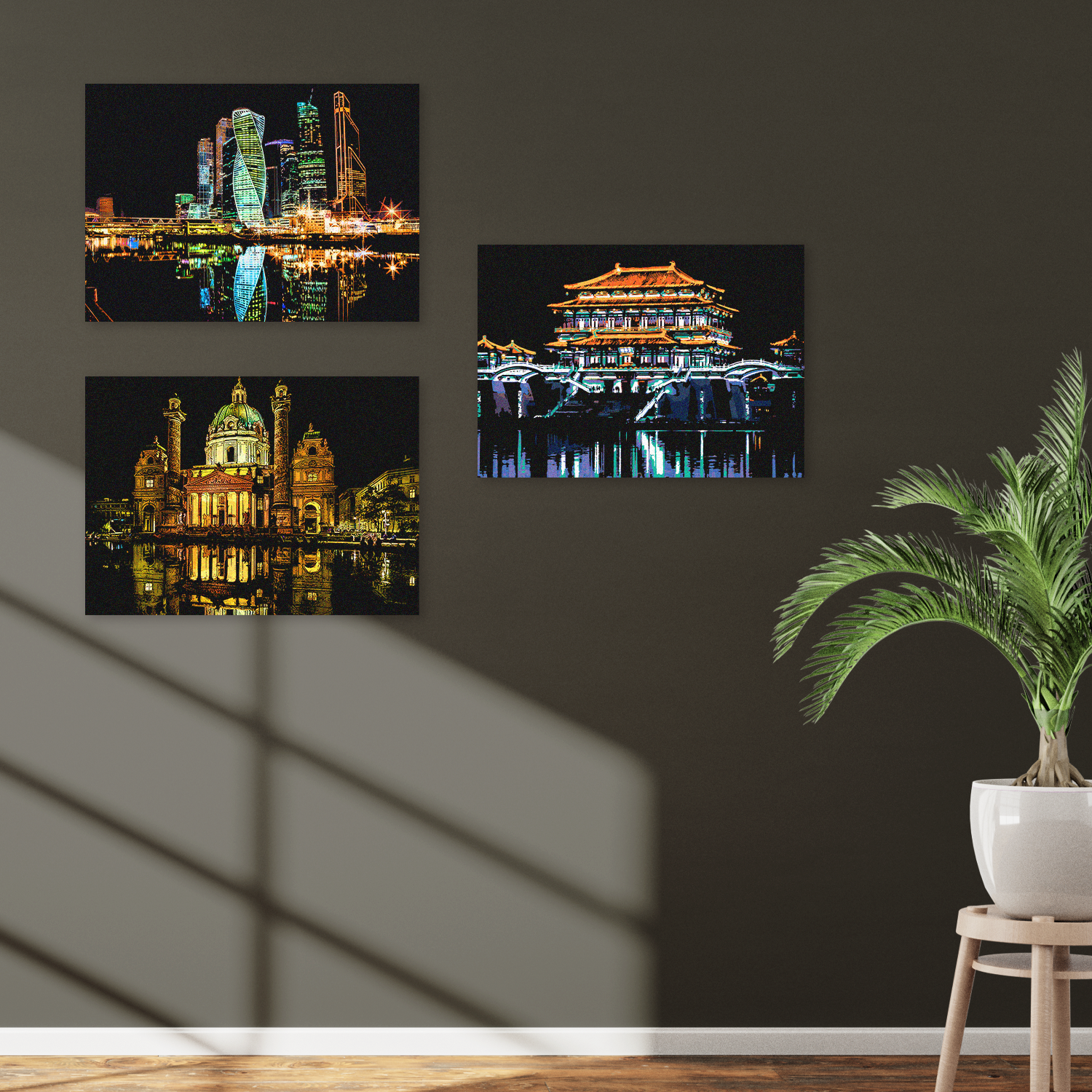 Купить Набор для творчества большая гравюра цветная скретч картина для детей LORI Ночные города, 30х40 см, 3 шт, Им-339