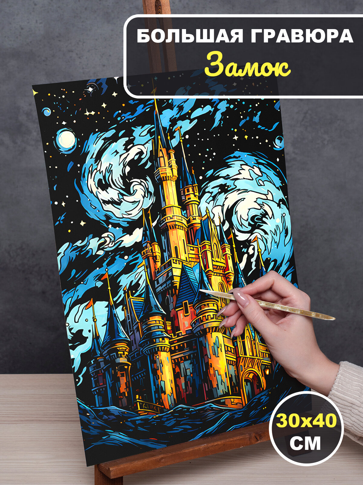Купить Гравюра для детей раскраска подарочный набор для творчества светящийся Замок