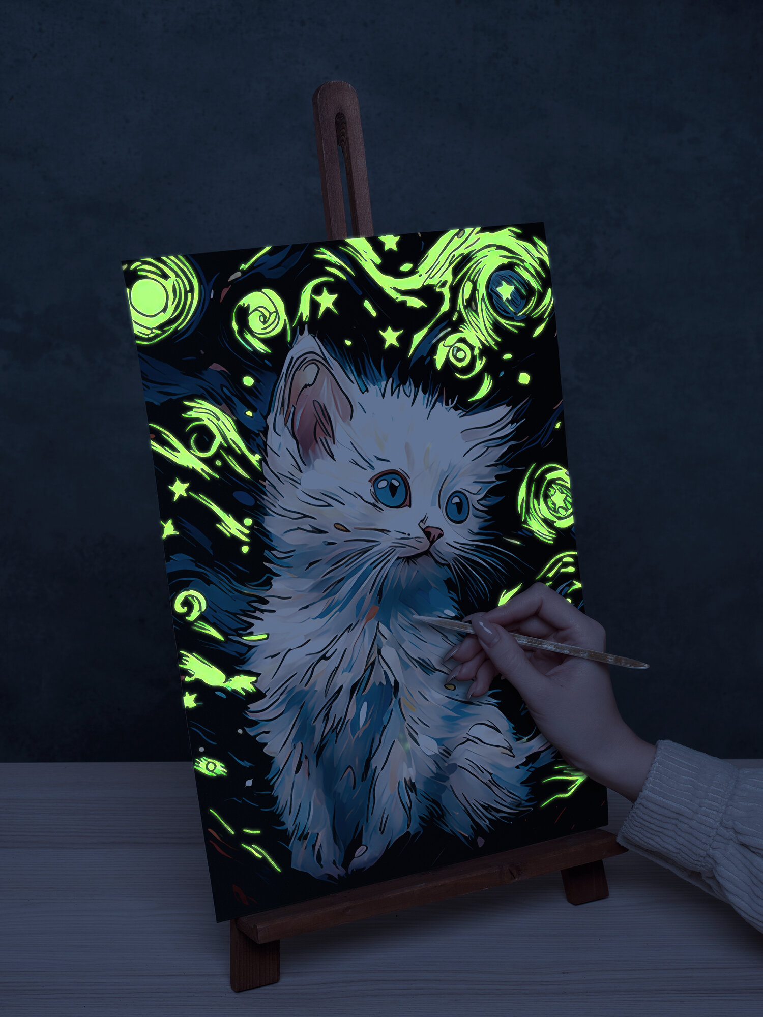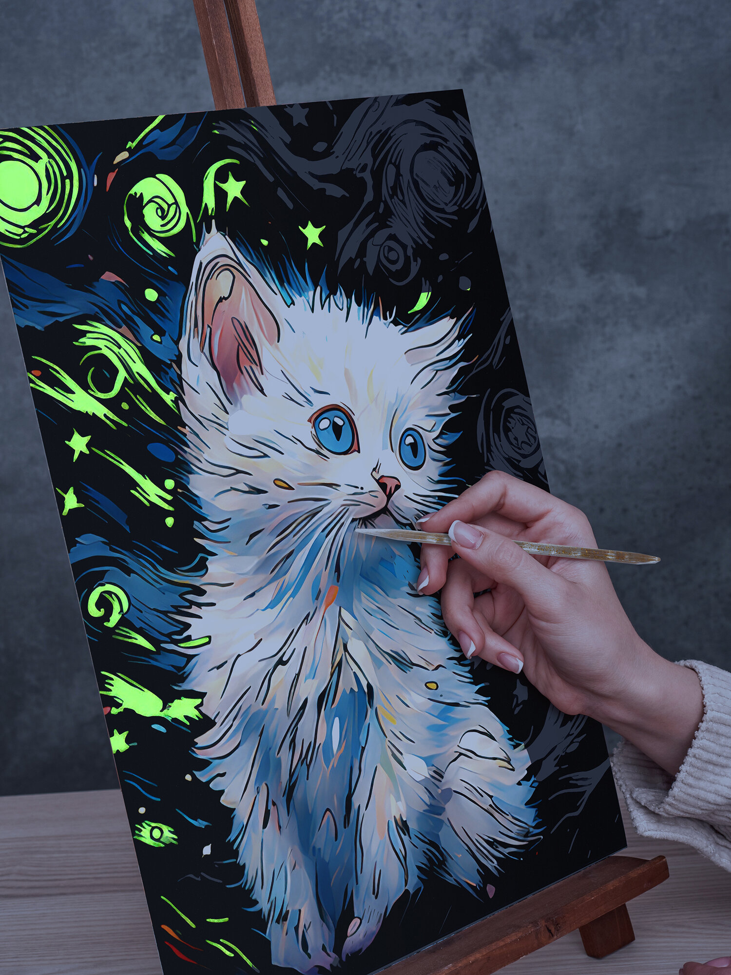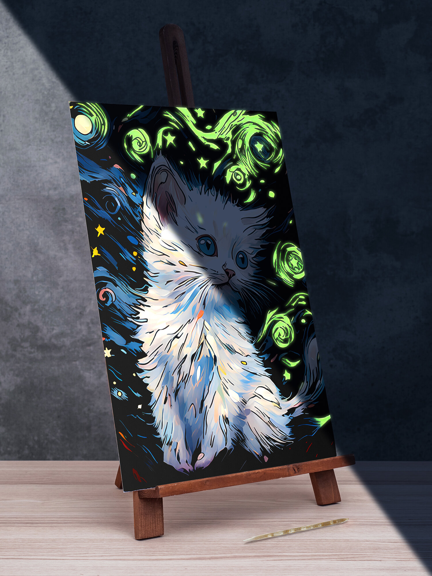 Купить Гравюра для детей раскраска подарочный набор для творчества светящийся Кот белый