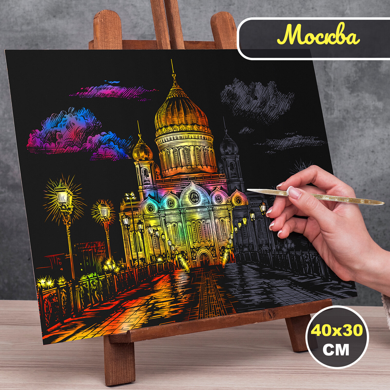 Купить Гравюра для детей раскраска подарочный набор для творчества Храм Христа Спасителя