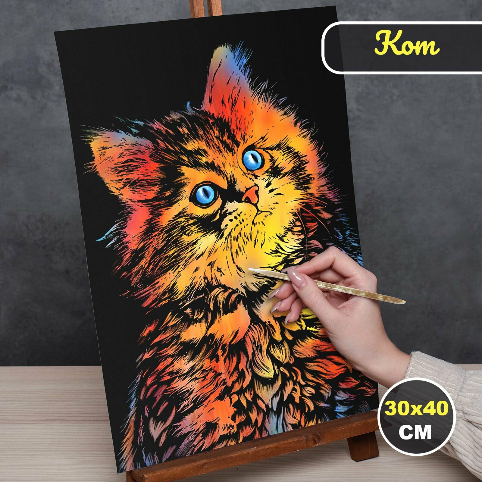 Купить Гравюра для детей раскраска подарочный набор для творчества Кошка