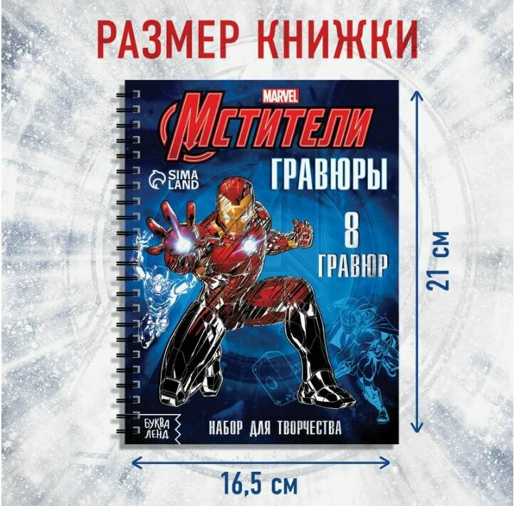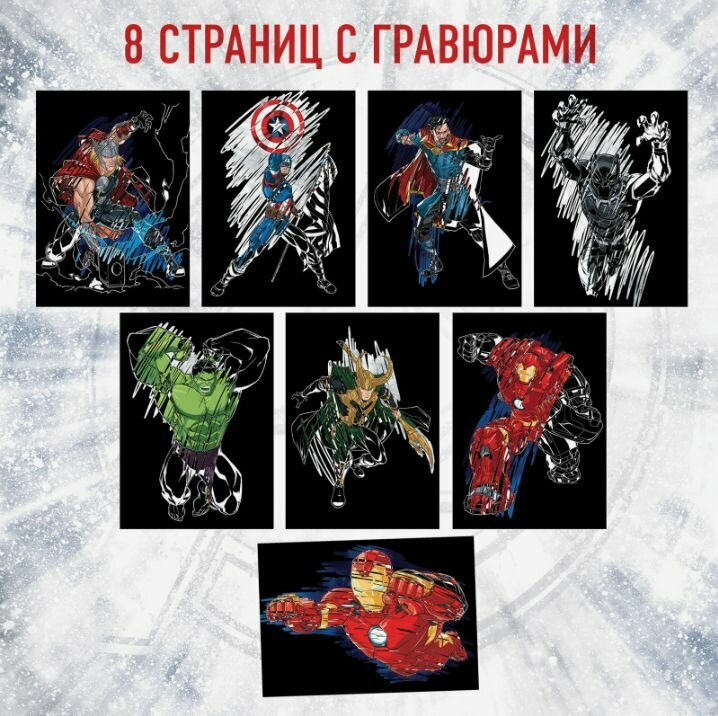Гравюра, Марвел Мстители, творчество для мальчиков, 8 шт, блокнот с заданиями, развивашки для 3 лет интересное: