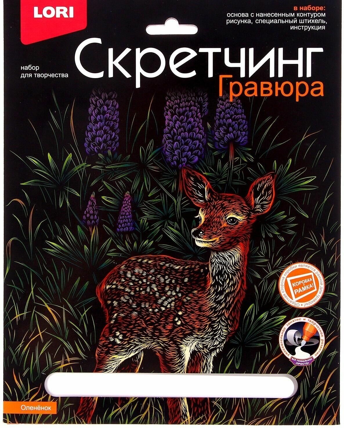 Купить Гравюра -скретчинг цветная 18х24см Животные классика Олененок Гр-740