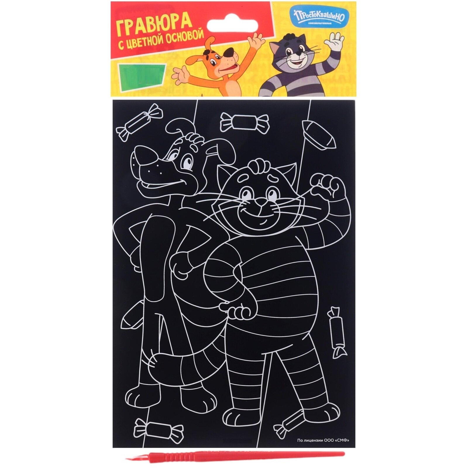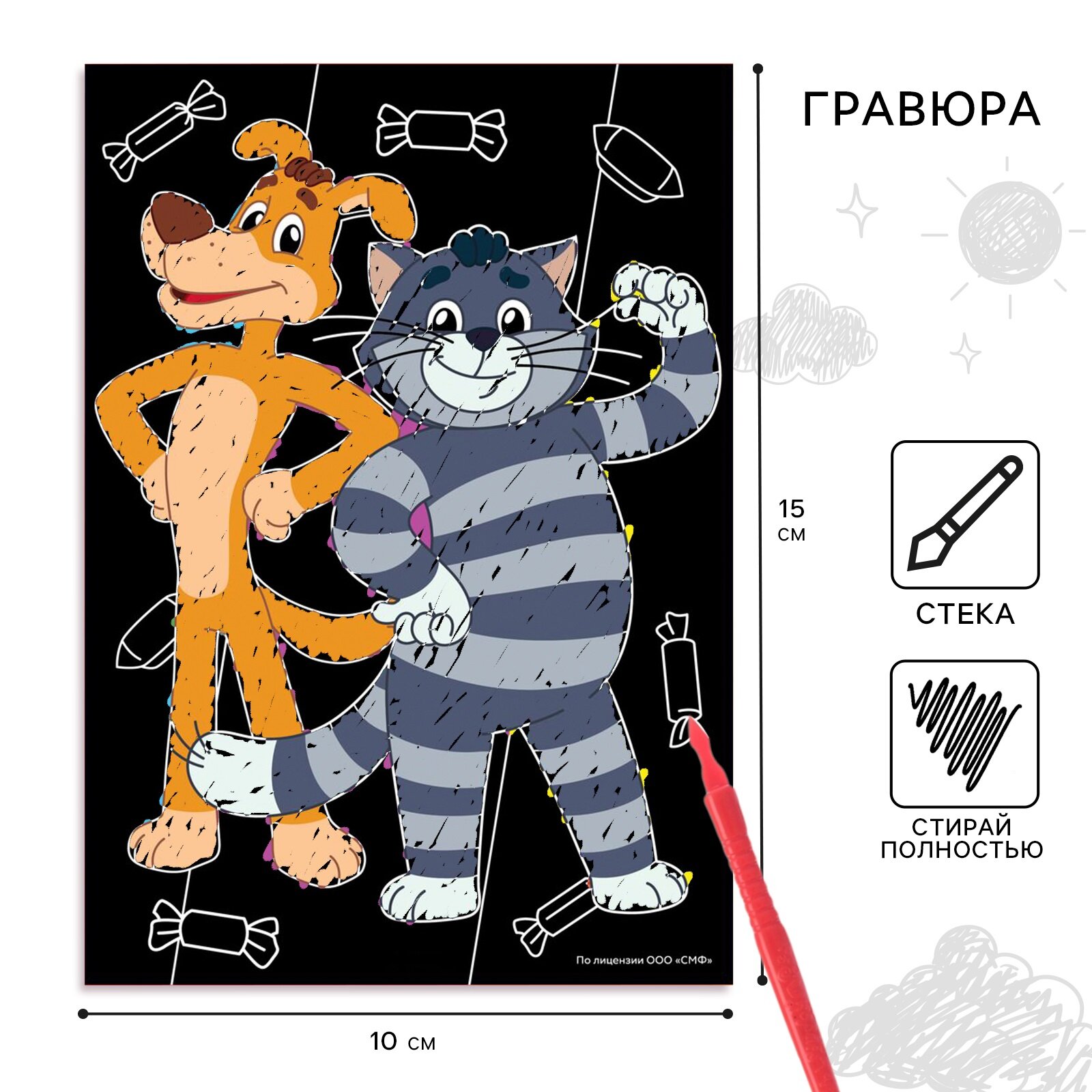 Блокнот-гравюра "Простоквашино", 10 листов, лист наклеек, штихель, формат А6