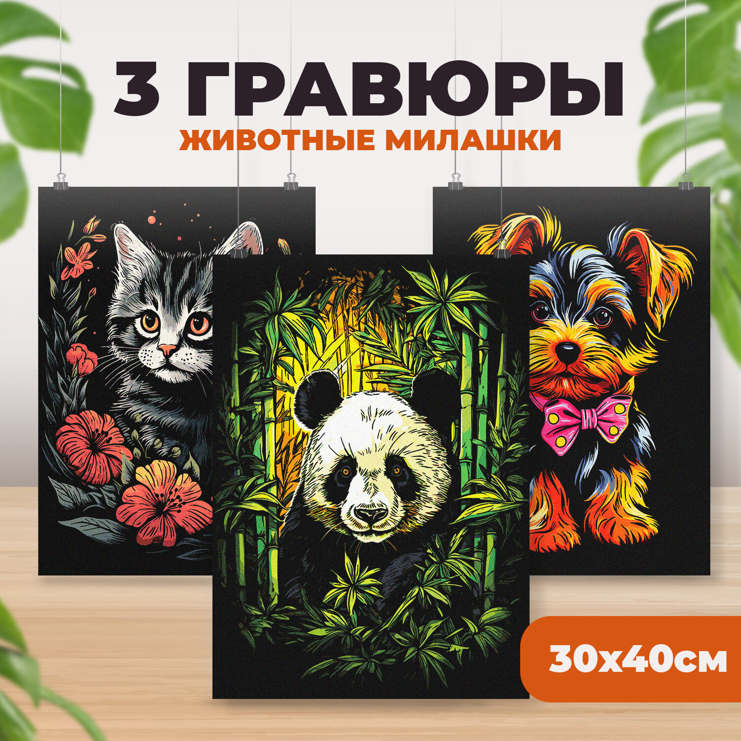 Набор для творчества гравюра цветная скретч картина LORI Животные милашки, 30х40 см, 3 шт, Им-380 интересное: