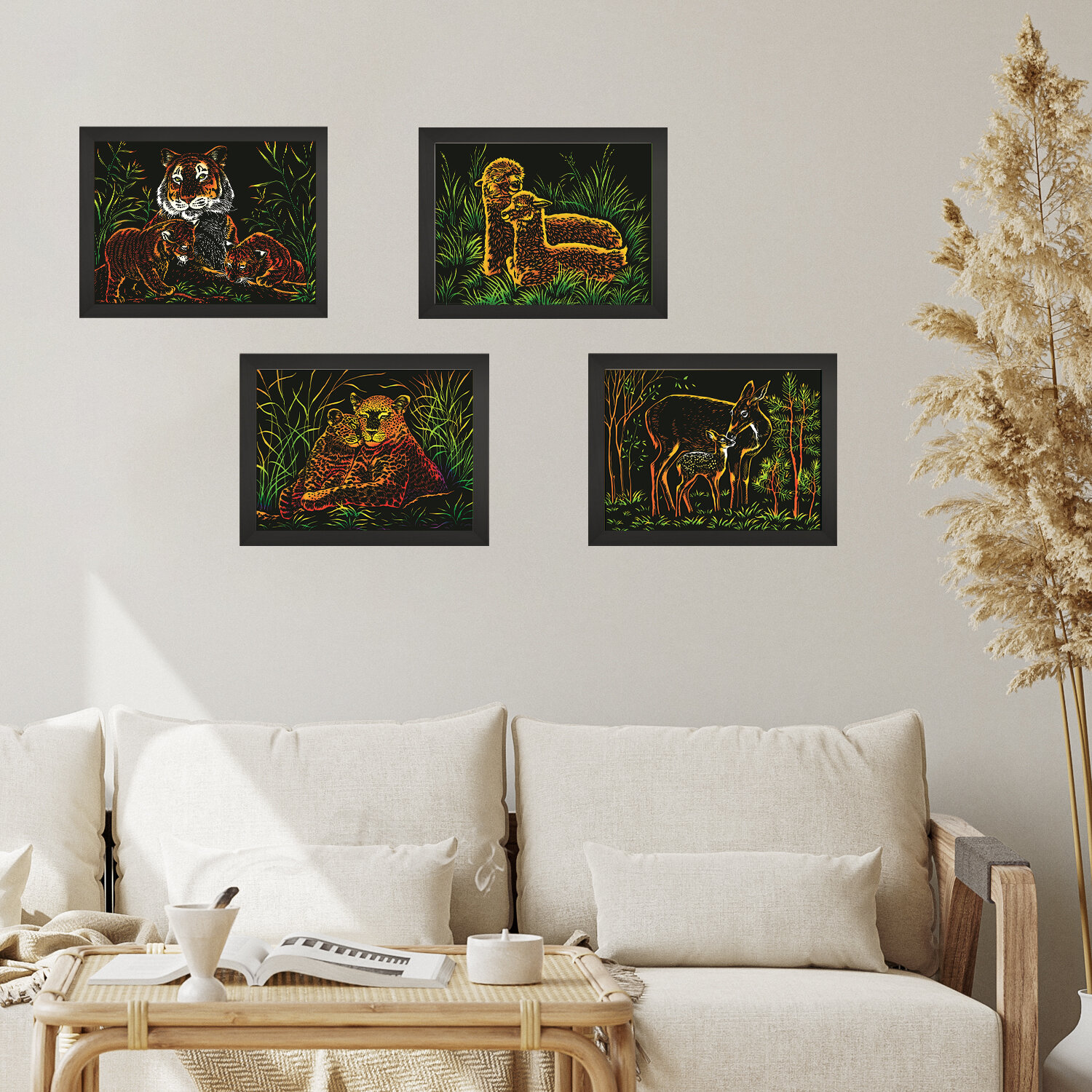 Купить Набор для творчества цветная гравюра скретч картина LORI Животные с малышами, 18х24 см, 4 шт в комплекте, Им-383