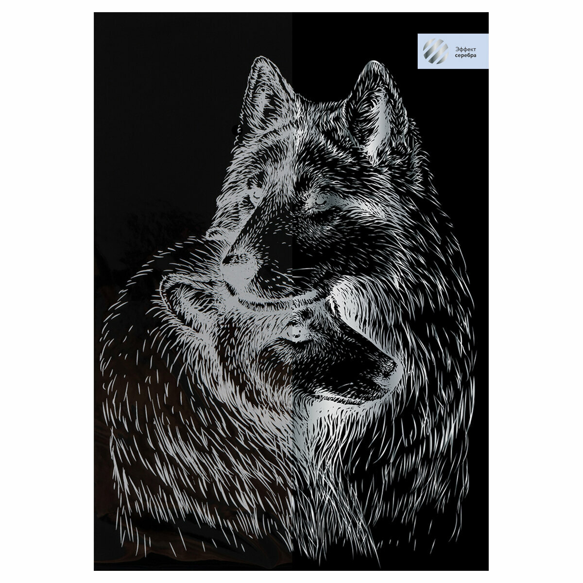 Купить Гравюра с эффектом серебра ТРИ совы "Волки", А4, 3 штуки