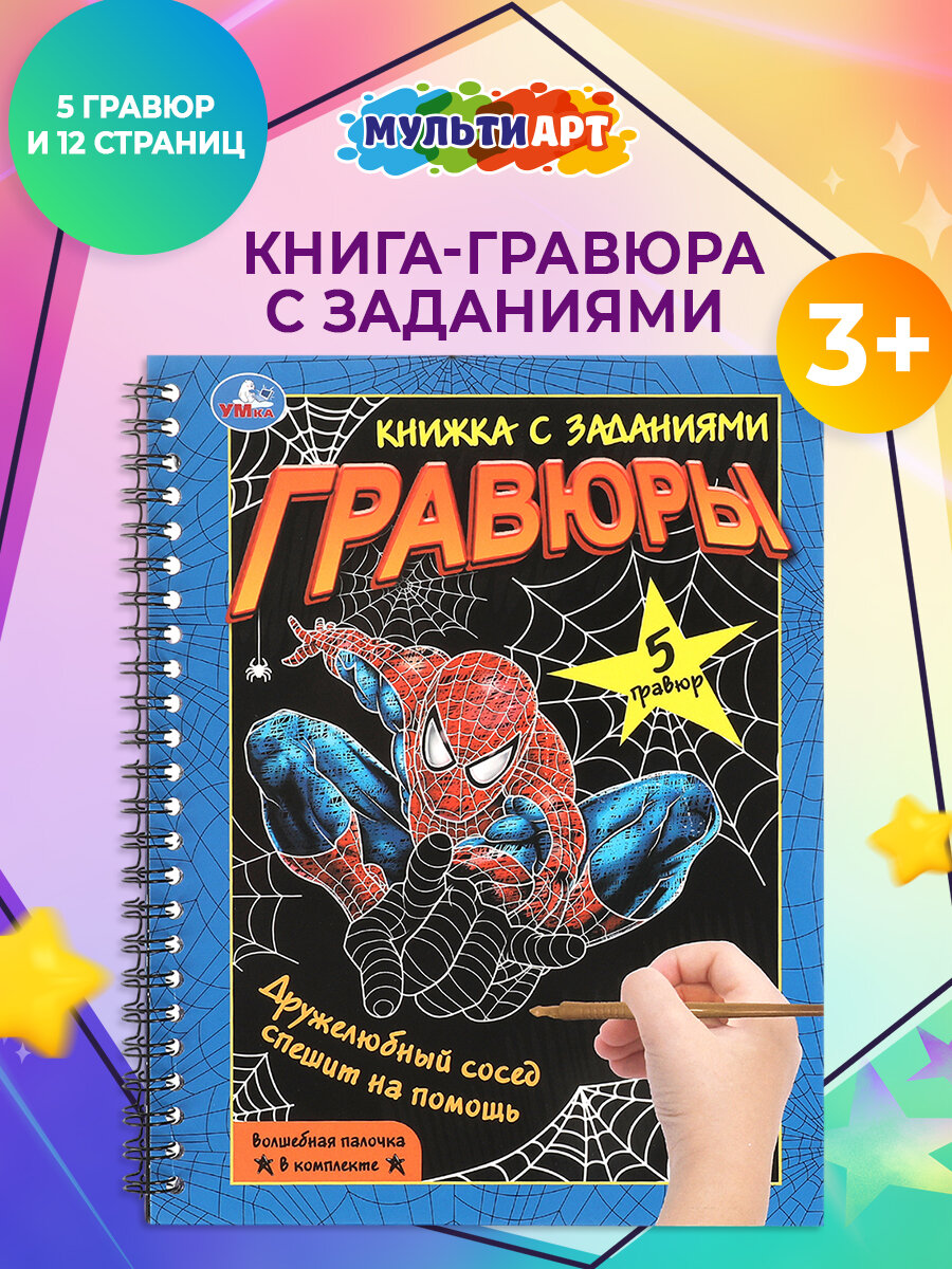Набор для творчества блокнот с гравюрами Супергерой Умка 5 гравюр интересное: