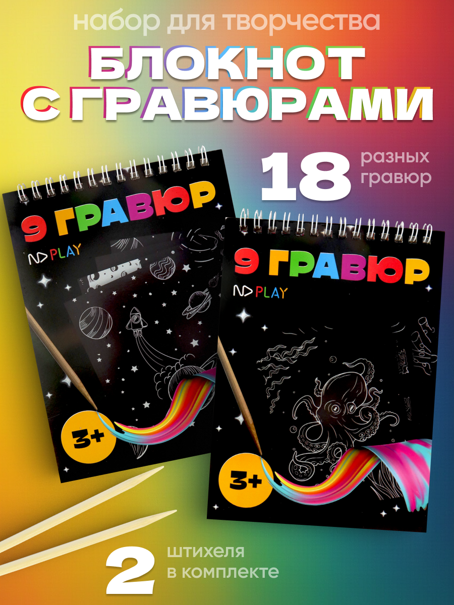 Набор для творчества ND Play, 18 гравюр (Монстрики, Космос)