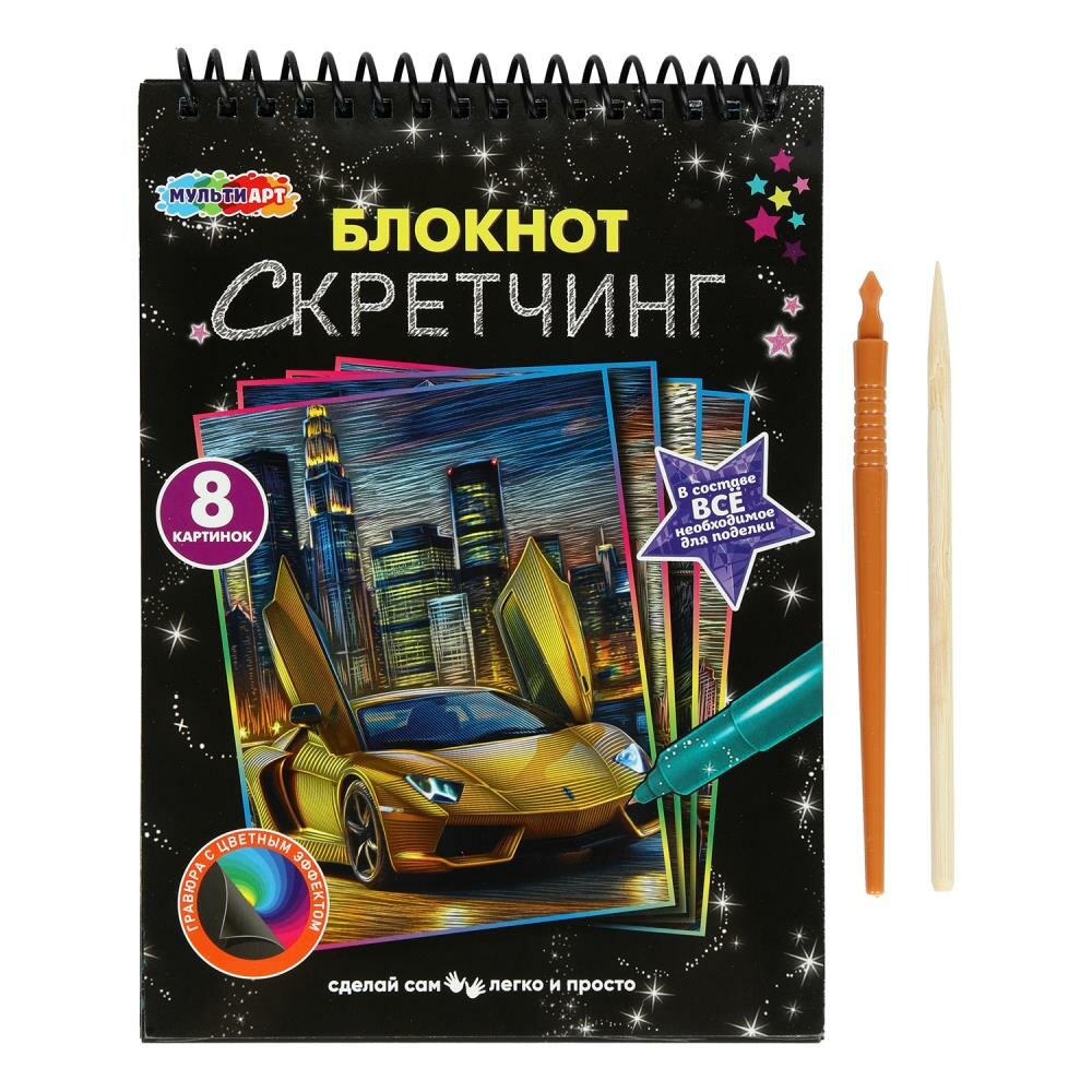 Купить Набор для творчества блокнот скретчинг с гравюрами для детей Крутые тачки 8 картинок, Мульти Арт