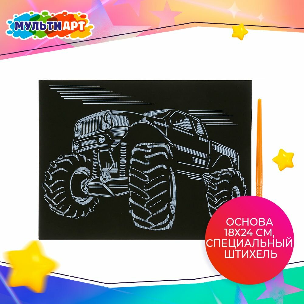 Купить Набор для творчества гравюра для детей Машина, Мульти Арт, для детей от 3-х лет
