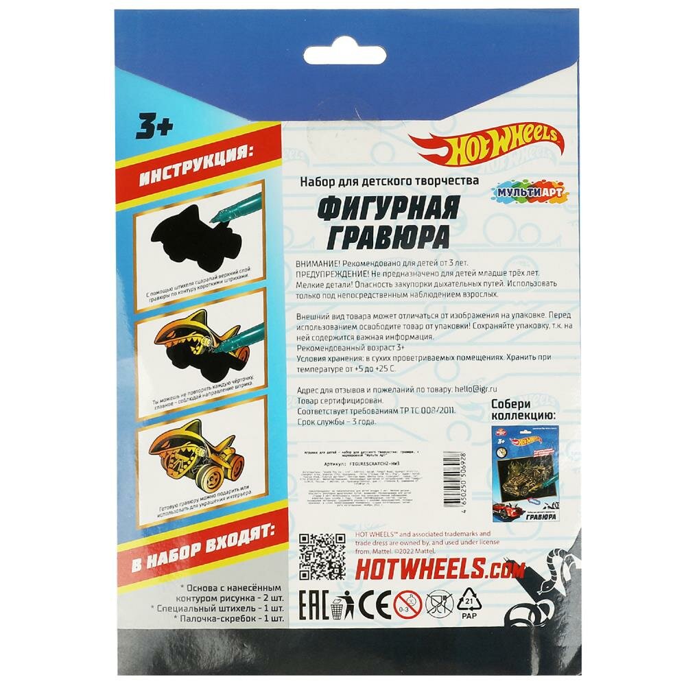 Набор для творчества Гравюра с декорированием Hot Wheels, Мульти Арт, для детей от 3-х лет