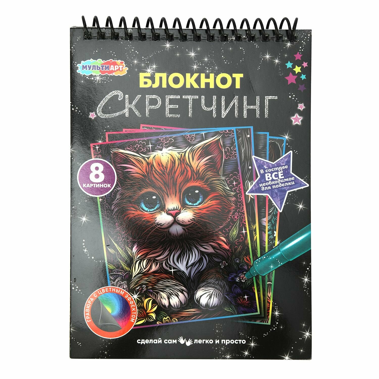 Купить Набор для творчества блокнот скретчинг с гравюрами для детей Мультяшки 8 картинок, Мульти Арт