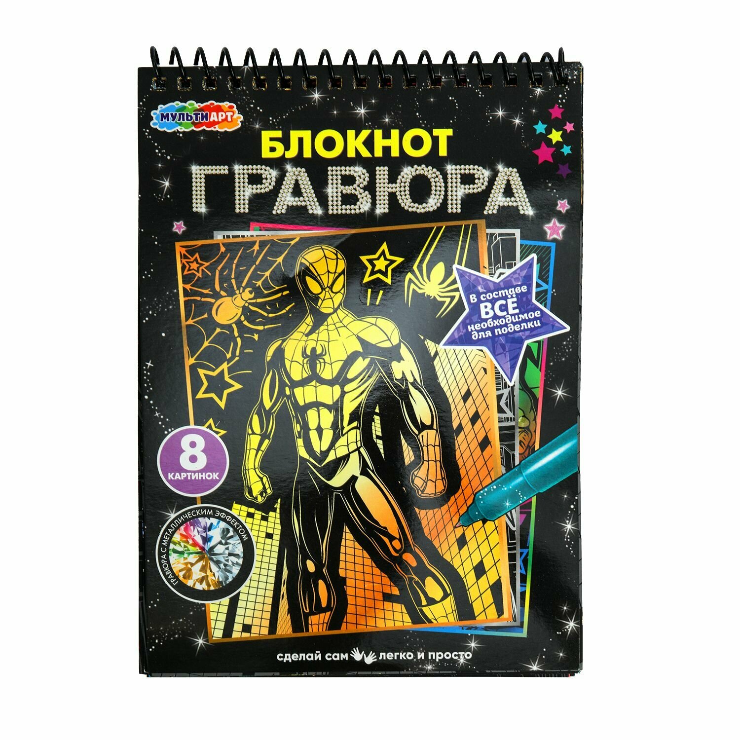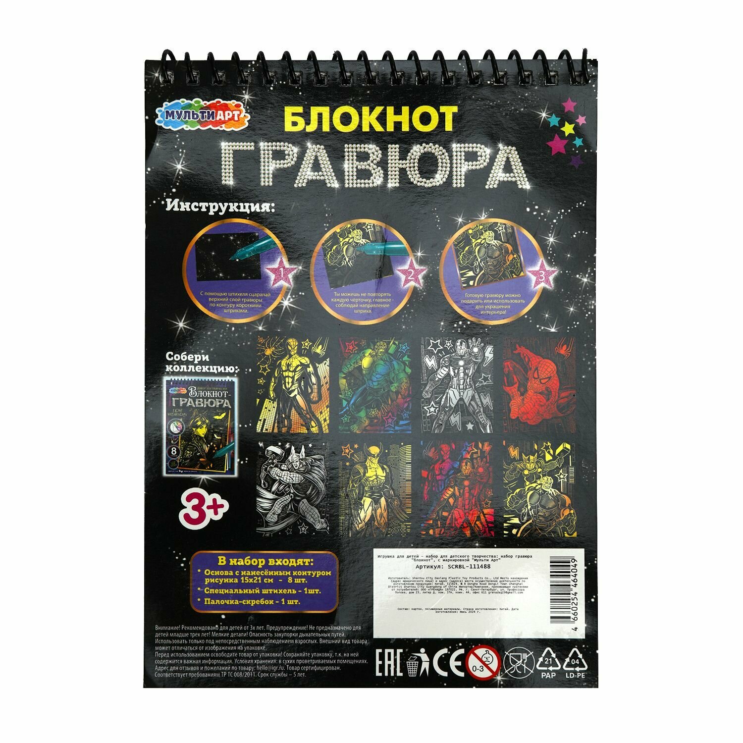 СохранитьНабор для творчества блокнот с гравюрами Супергерой, Мульти Арт, 8 картинок, для детей от 3-х лет интересное: