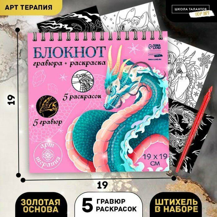 Блокнот гравюра-раскраска "Драконы в реальном мире", 19 х 19 см интересное: