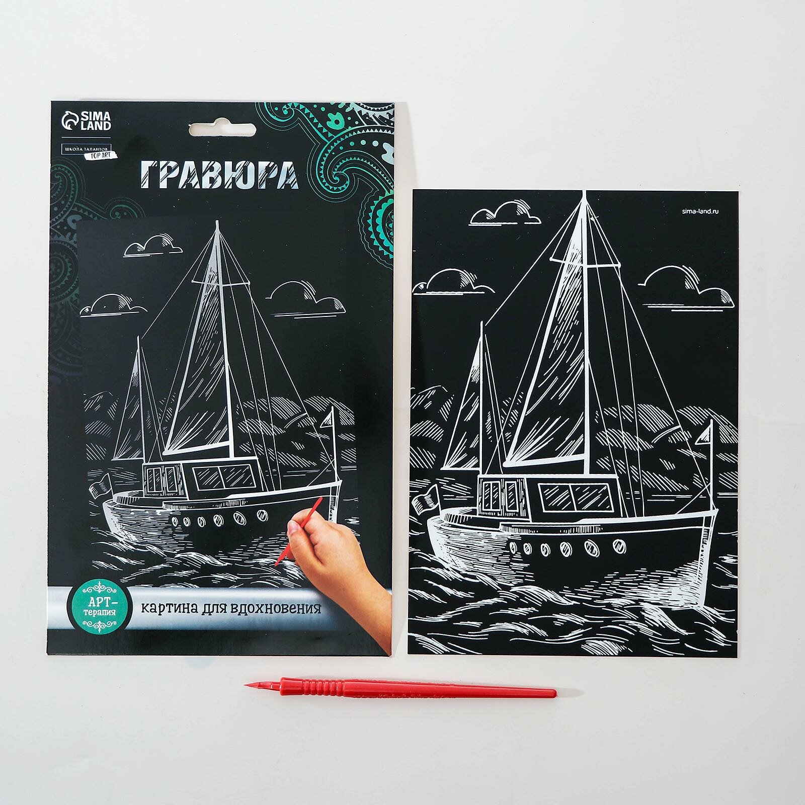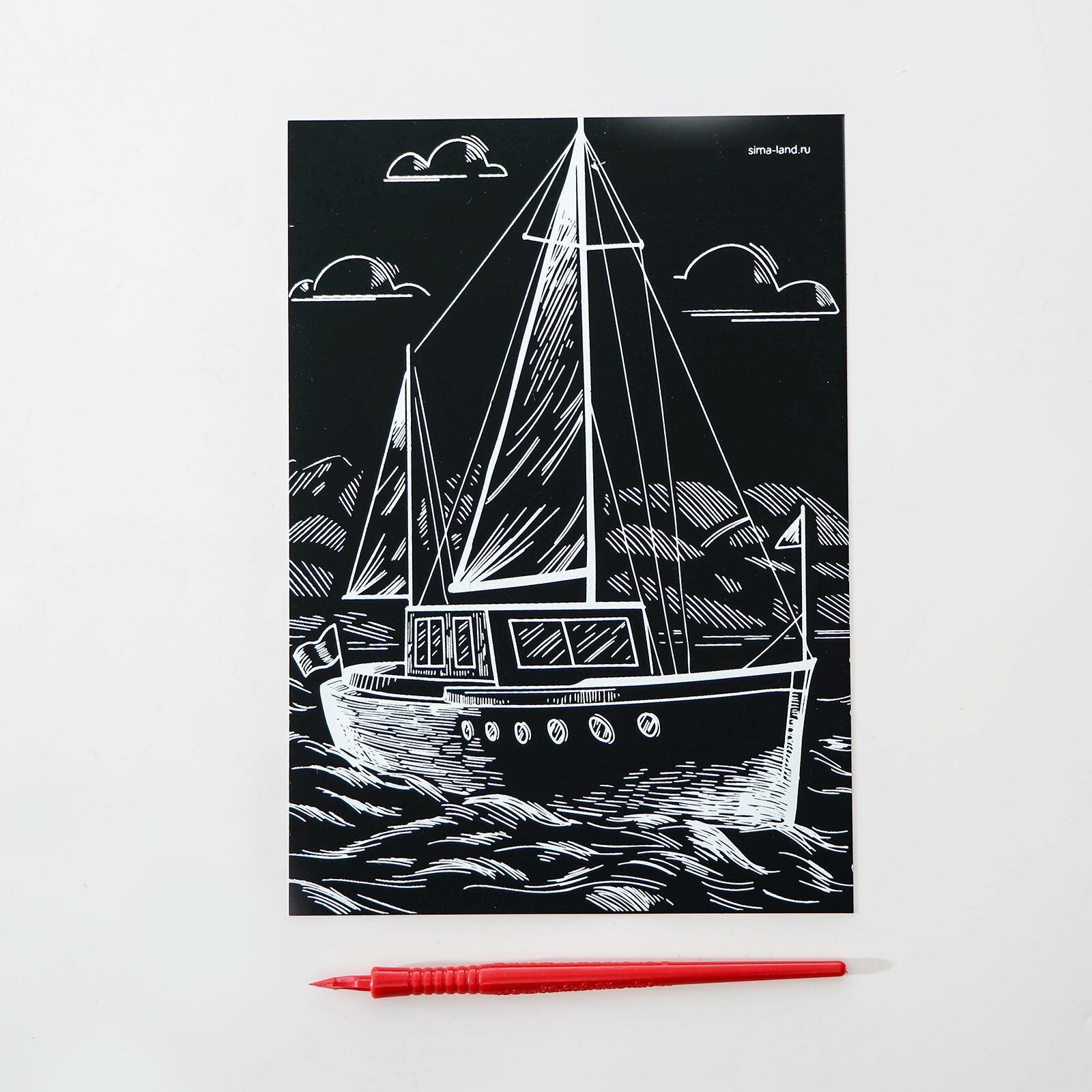 Гравюра на подложке «Яхта» с металлическим эффектом «серебро» А5, 4063540 интересное: